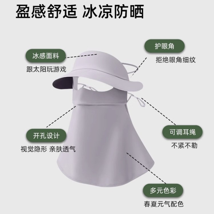 防曬面罩全臉防紫外線遮陽女冰絲黑膠帽子一體護頸臉基尼騎行口罩