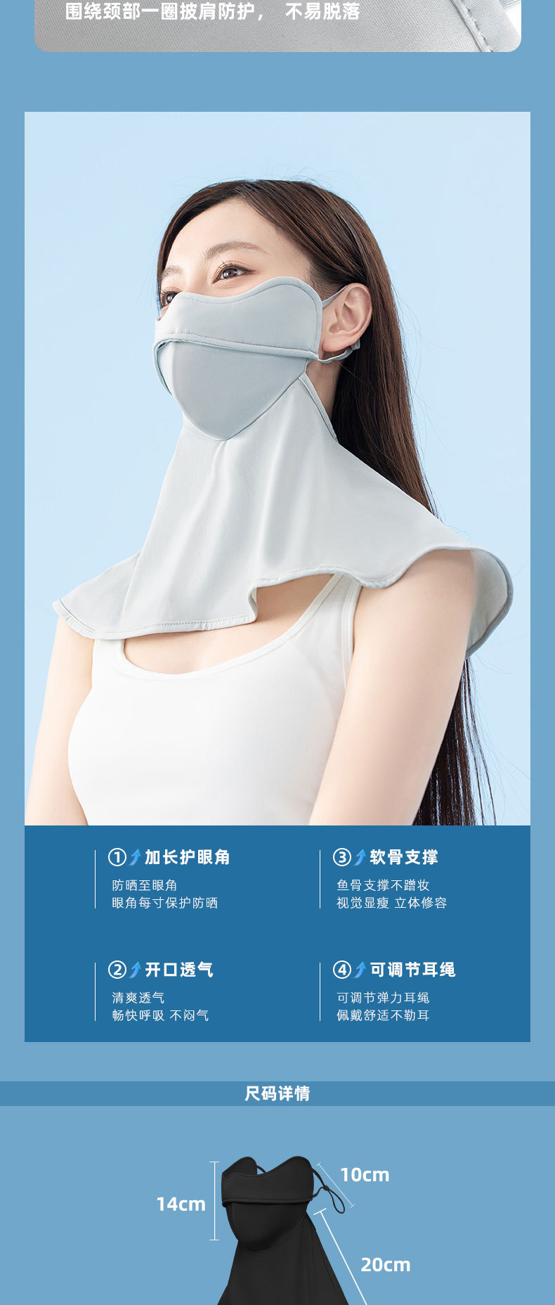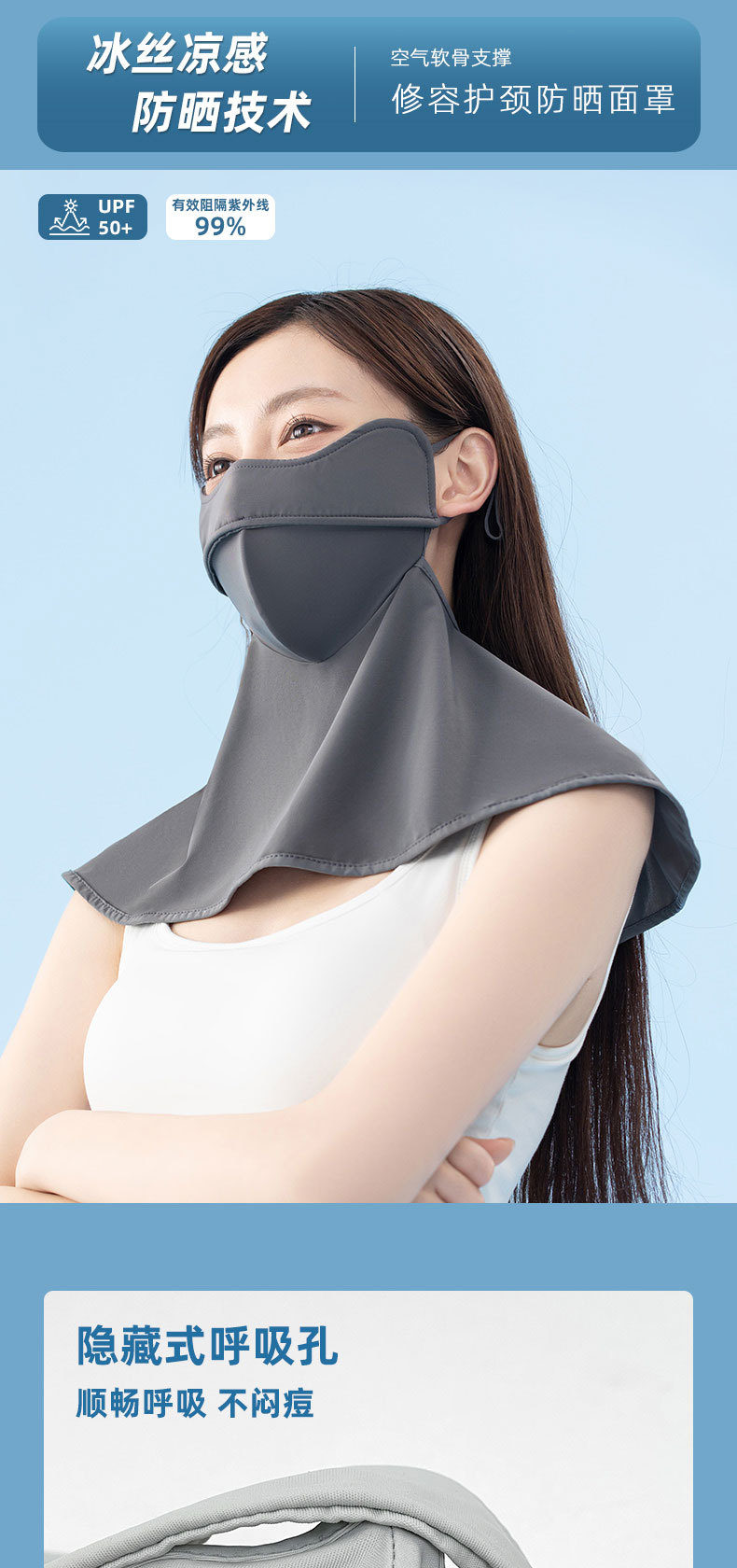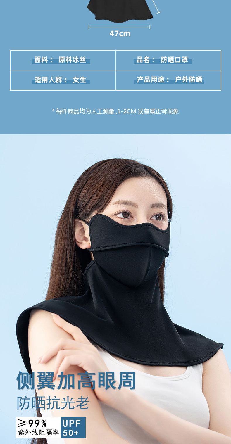 無痕防曬口罩女UPF50+防紫外線2023新款3d立體護眼角女高顔值顯瘦