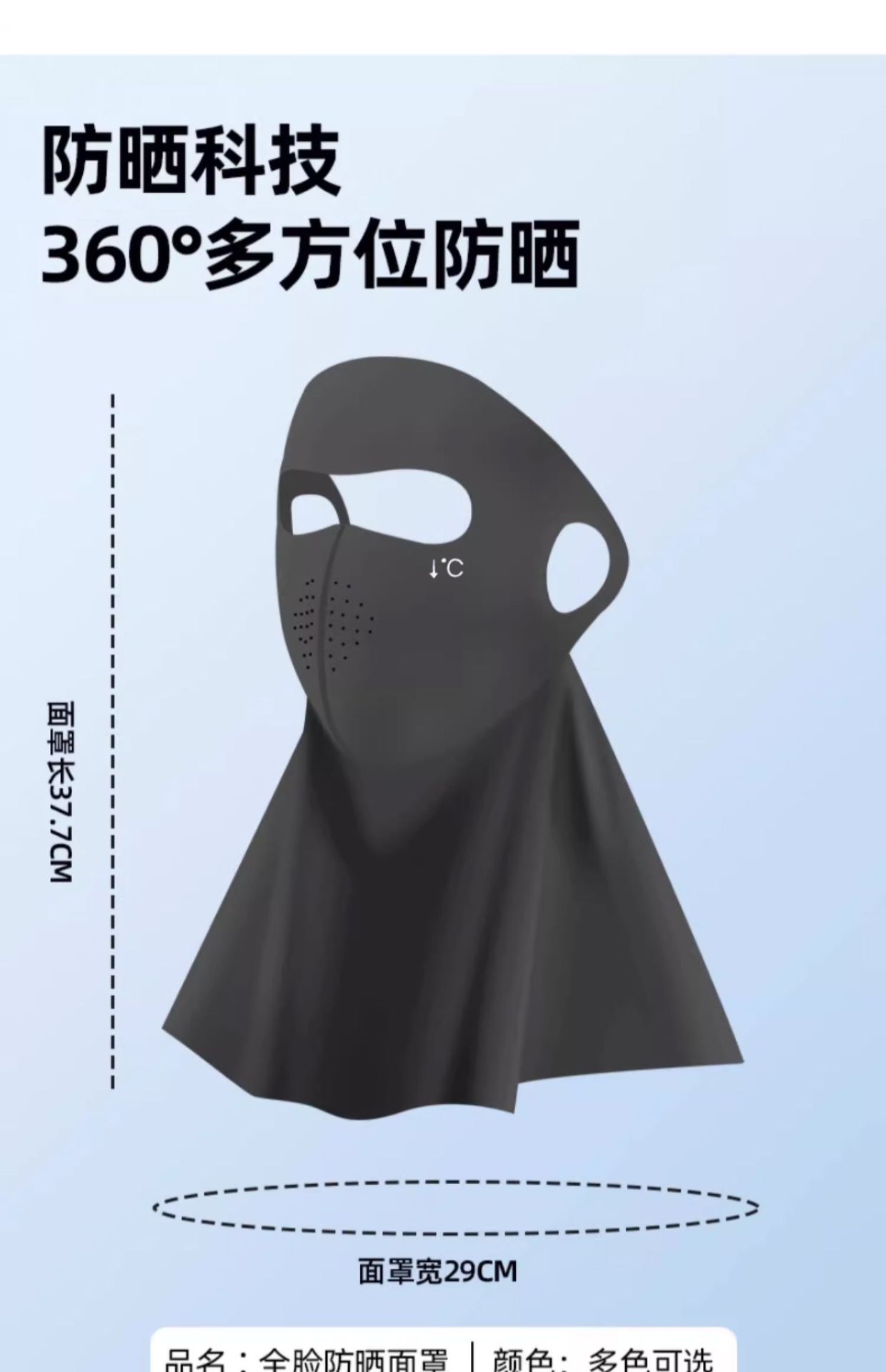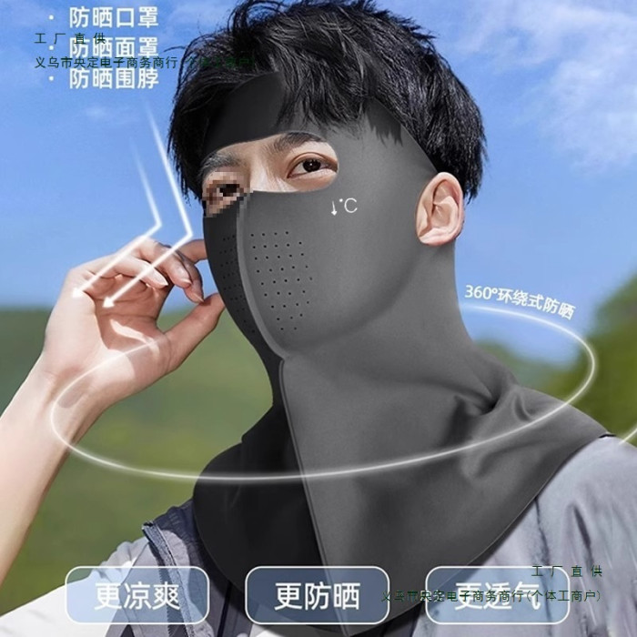 冰絲透氣遮陽防紫外線全臉防曬面罩男夏季護頸一體臉基尼口罩騎行