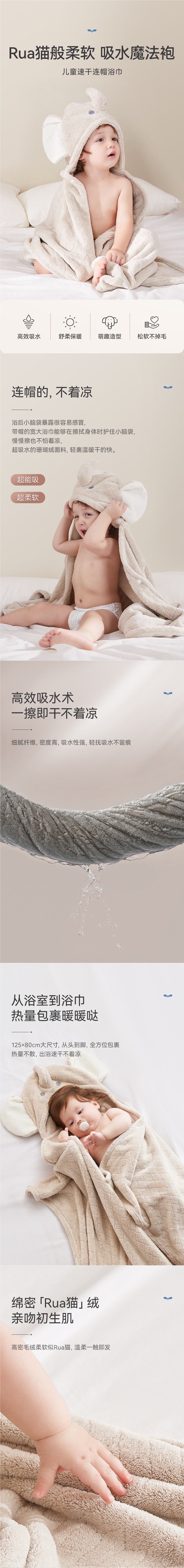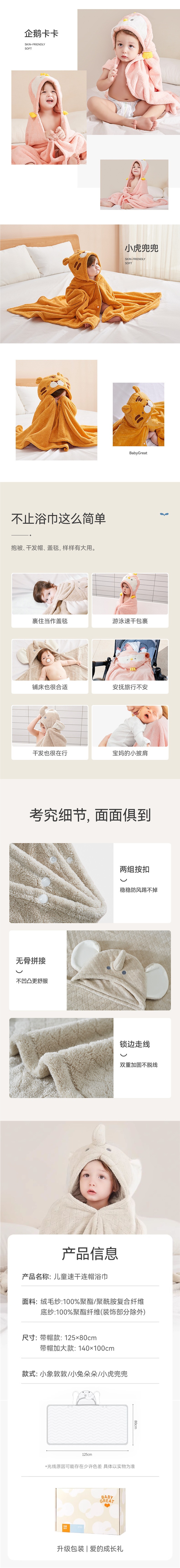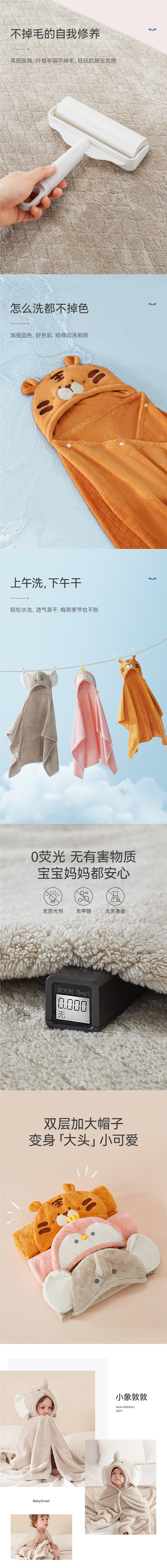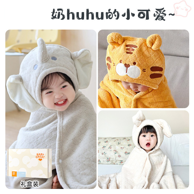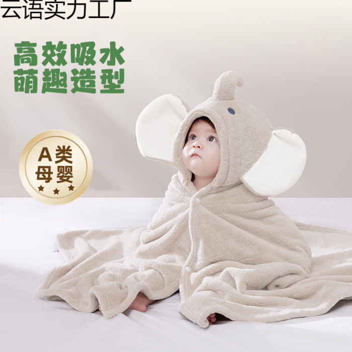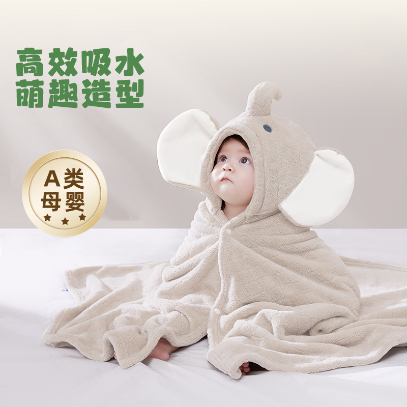 嬰兒浴巾寶寶鬥篷兒童浴袍小象秋冬洗澡類超軟裹巾默認項
