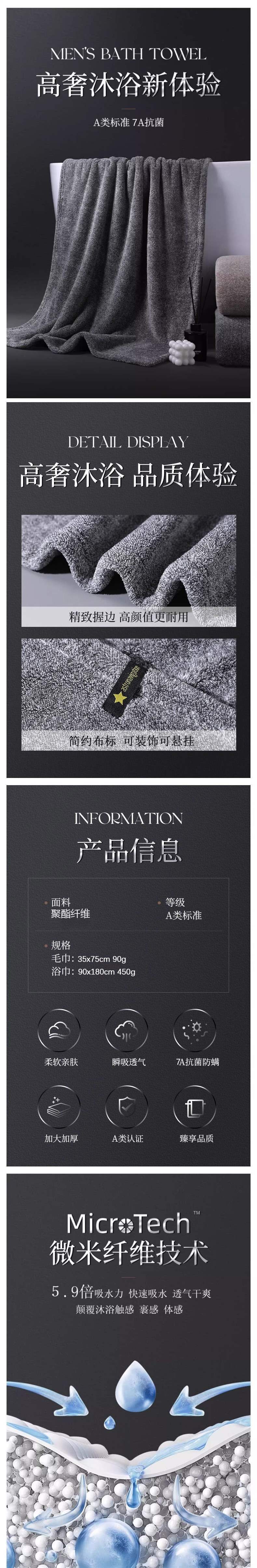 男士A類浴巾家用成人吸水速乾不毛男款加大加厚洗澡裹巾