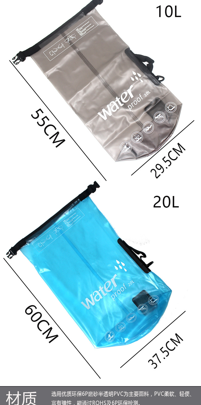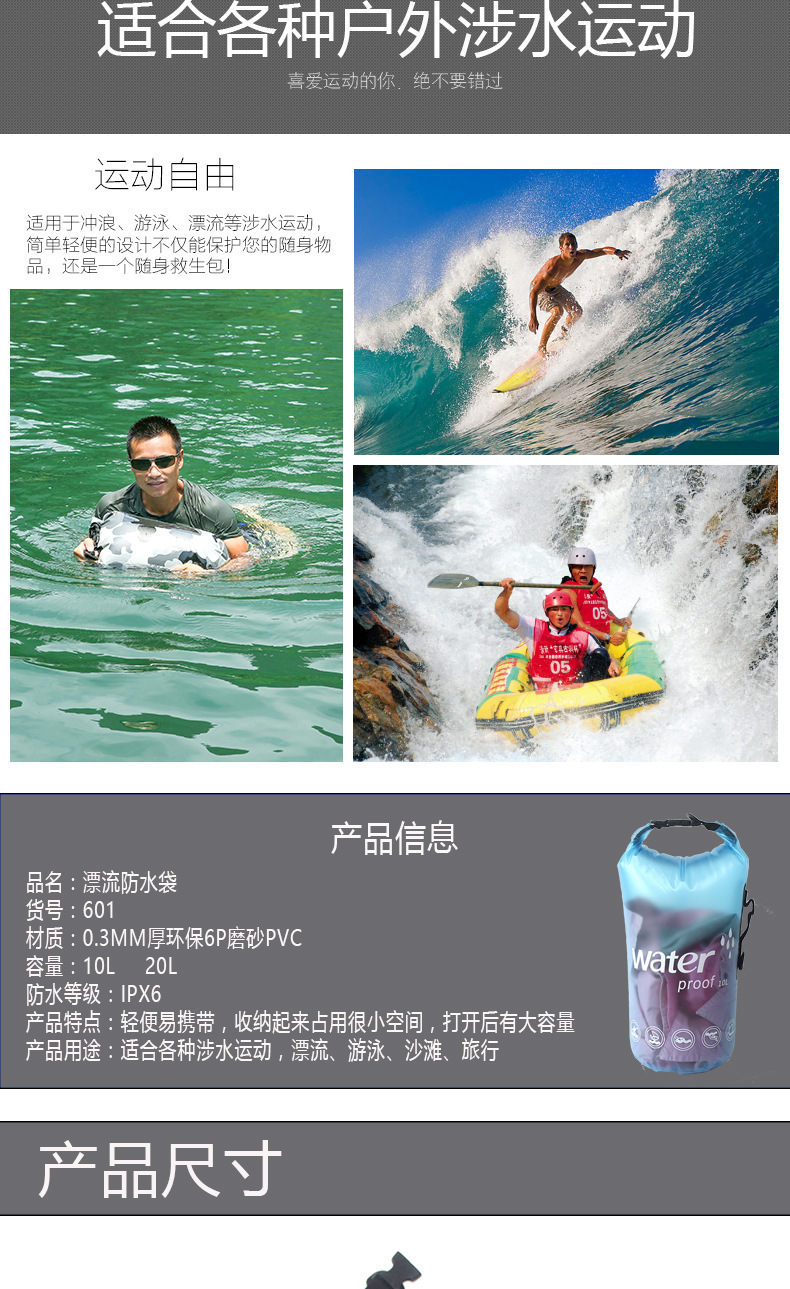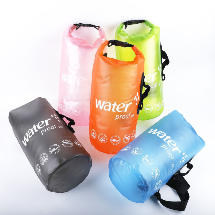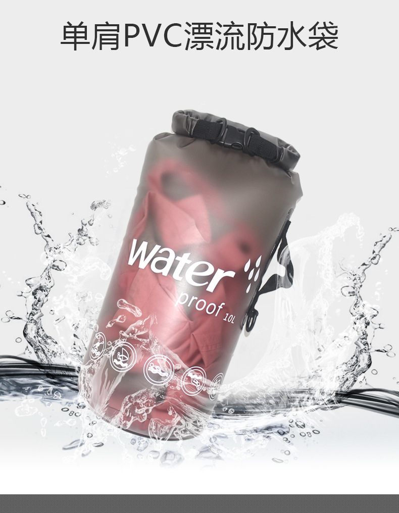 單肩漂流防水袋PVC磨砂防水桶袋10L/20L半透明加厚遊泳包水袋