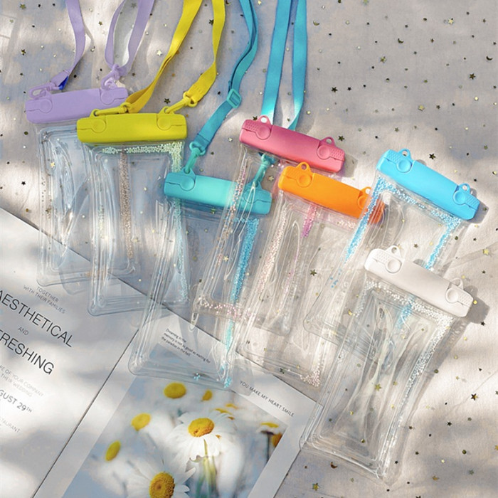純色泡泡充氣炫彩透明手機防水袋蘋果華爲通用密封觸控螢幕遊泳潛水套