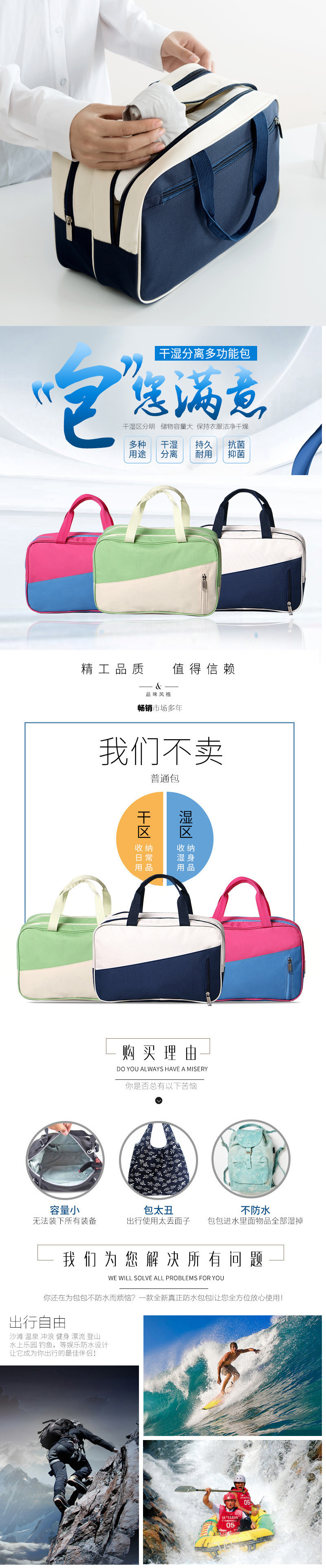 健身遊泳包乾濕分離男女防水包泳衣裝備收納袋沙灘包手提洗漱專用