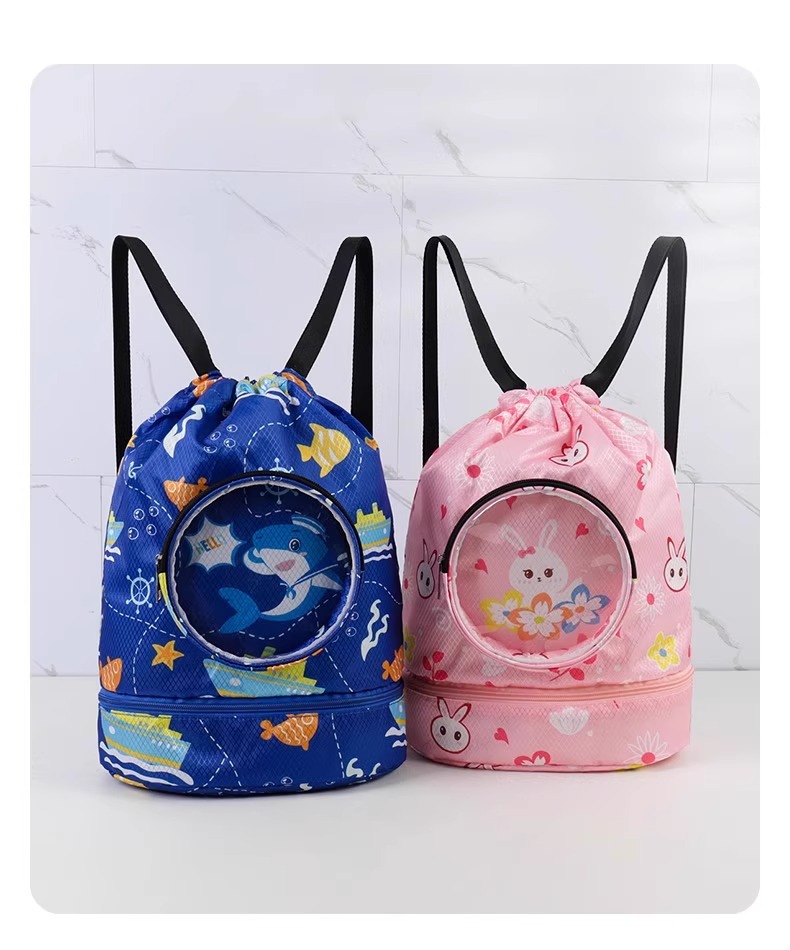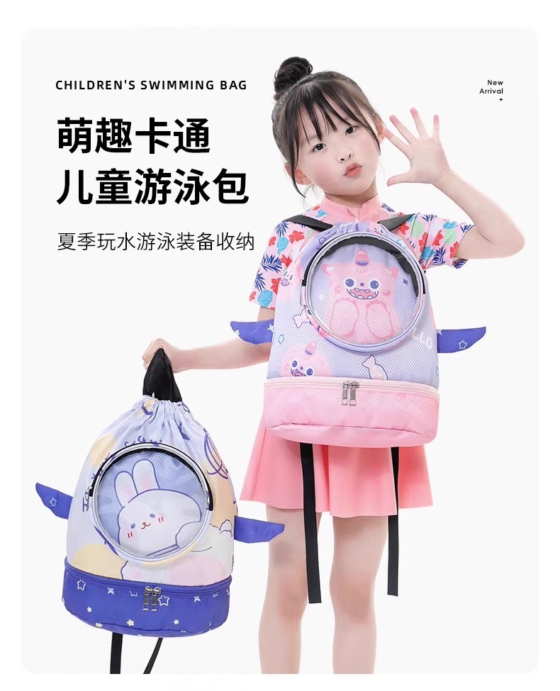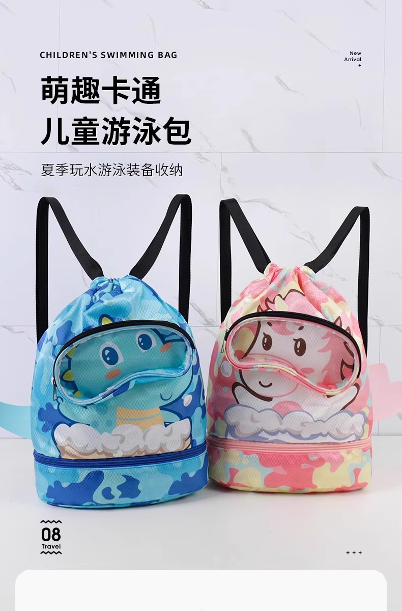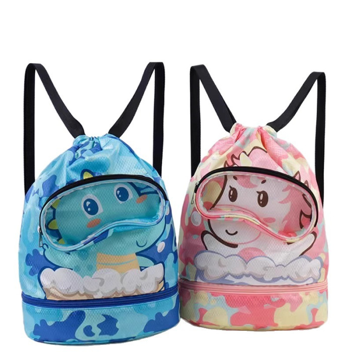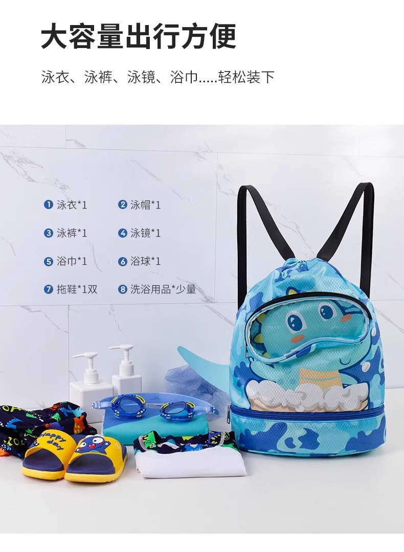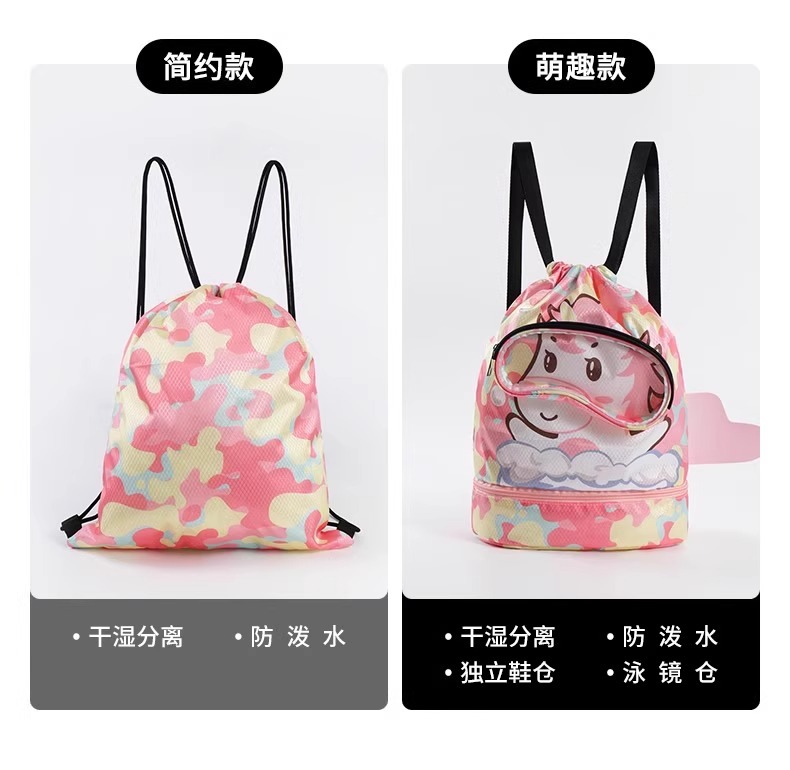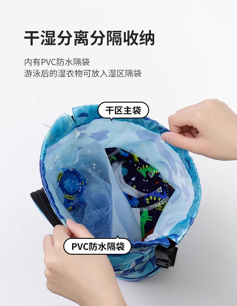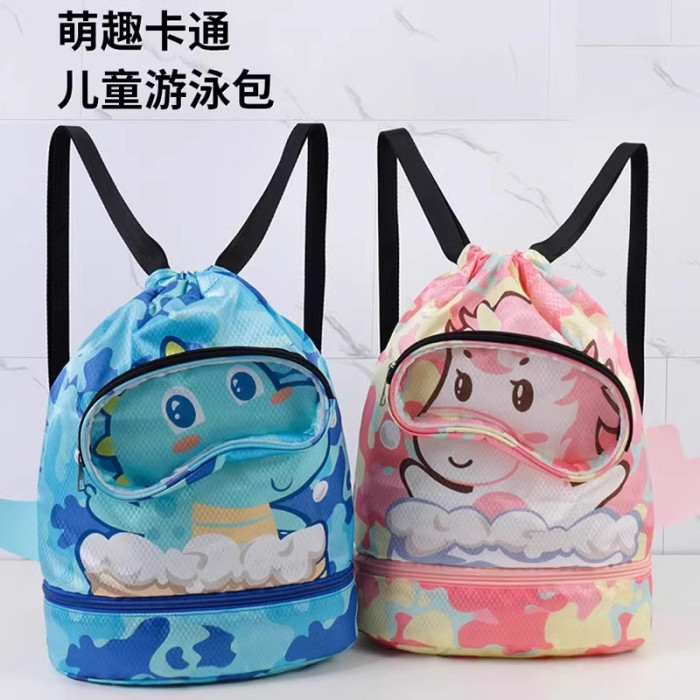 兒童遊泳包乾濕兩用防水收納袋男女童遊泳專用泳鏡束口卡通雙肩包