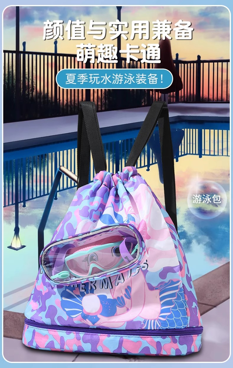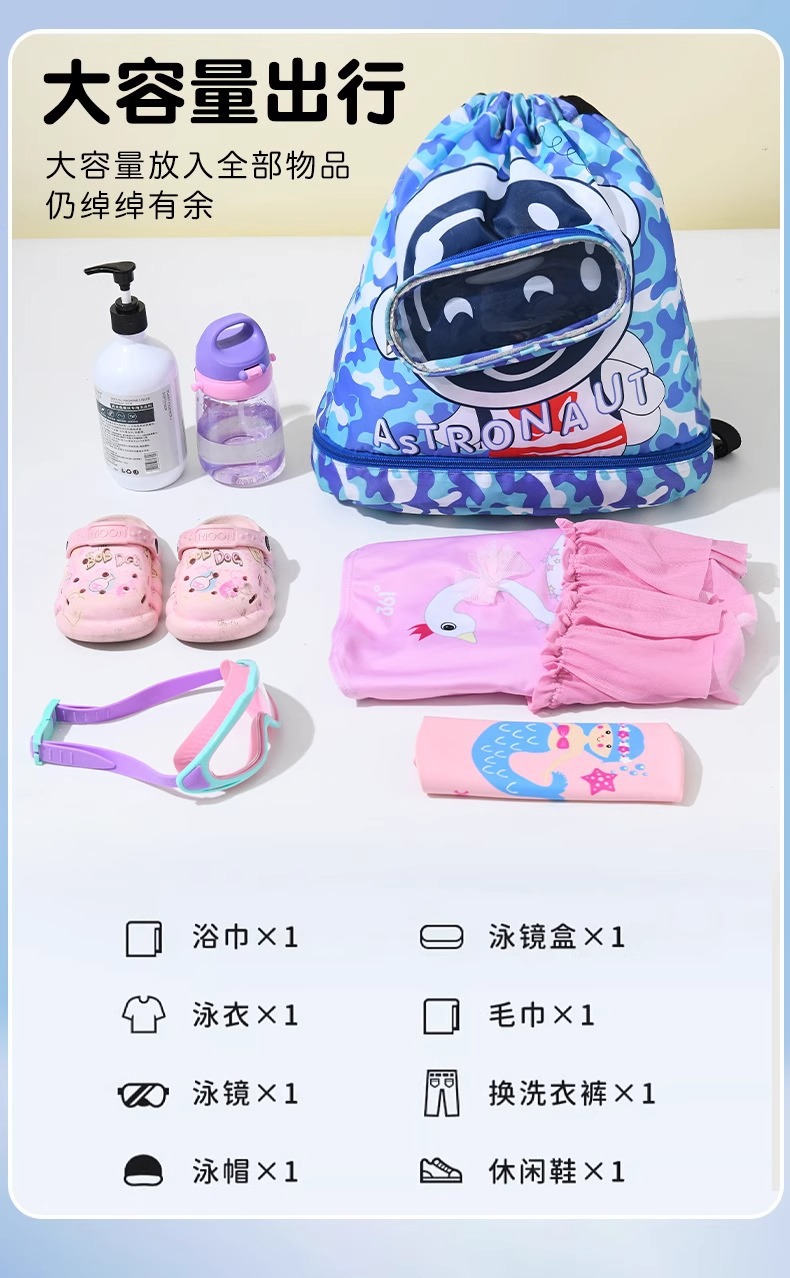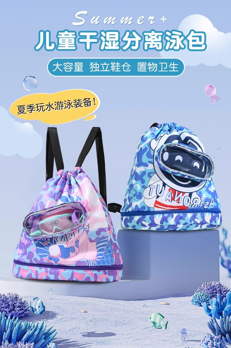 兒童遊泳包乾濕分離防水收納袋男女童可攜式後後背包沙灘雙肩包大容量