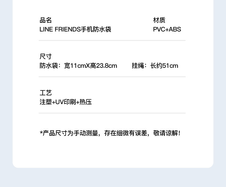 | 顔色 | 【IPX6級防水/靈敏觸控】手機防水袋 -CHOCO款 |