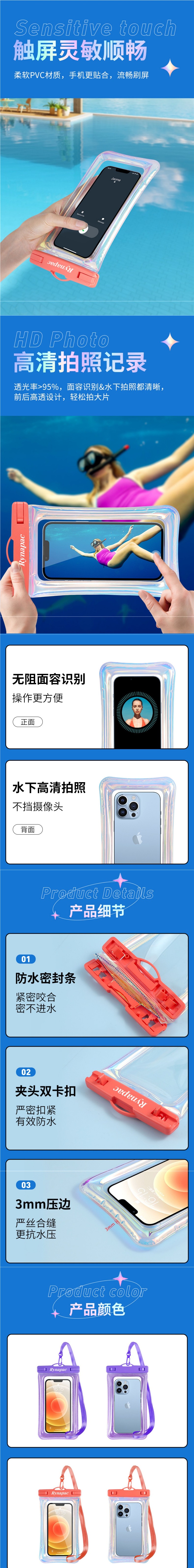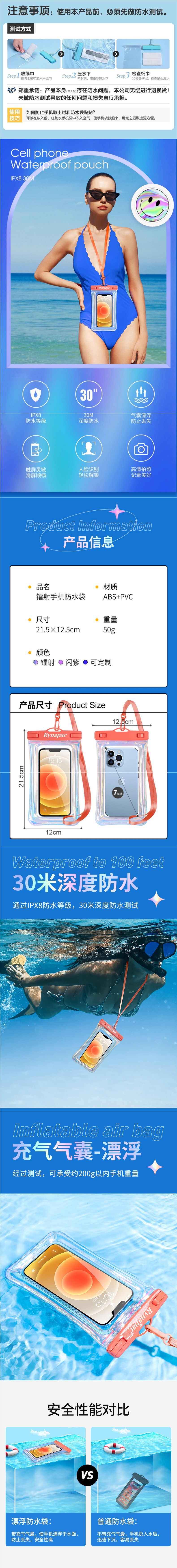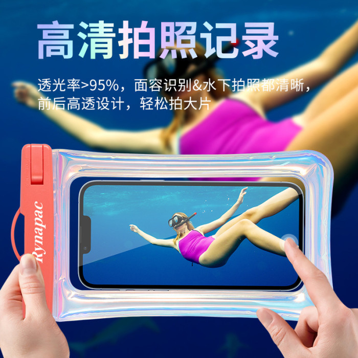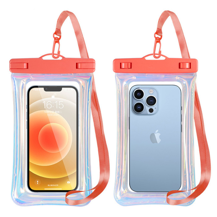 新款充氣鐳射幻彩手機漂浮防水袋 TPU氣囊漂浮溯谿漂流遊泳防水套