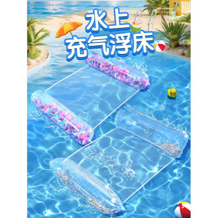 網紅羽毛亮片水上充氣浮床網床透氣浮排成人兒童通用躺椅浮椅浮圈