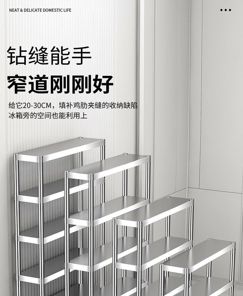 冰箱縫隙小架子15/20cm不鏽鋼廚房陽台儲物架夾縫置物架落地多層