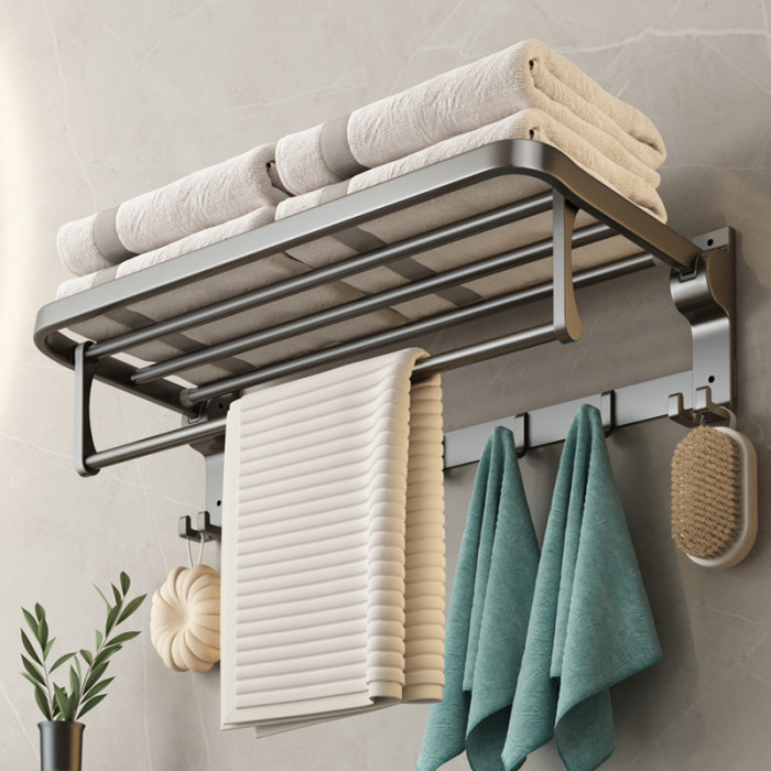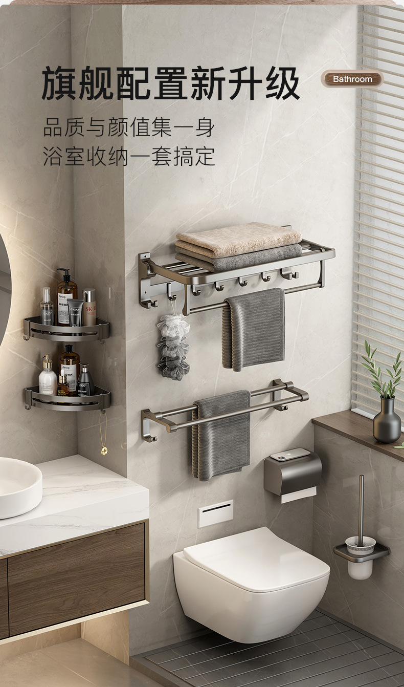 毛巾架免打孔衛生間置物架一體架子牆上掛架厠所洗澡間浴室浴巾架