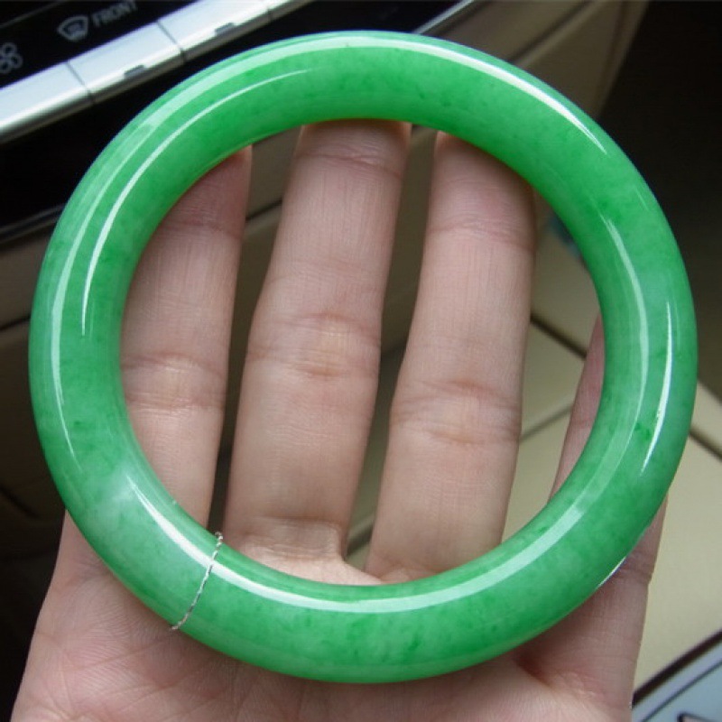 專櫃緬甸翡翠手鐲女天然冰糯種滿翠光澤細膩玉手鐲子圓條滿綠陽綠