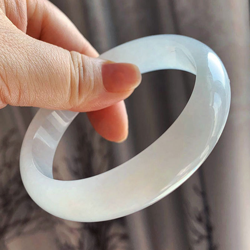 緬甸天然翡翠白月光手鐲老坑白冰手鐲女冰種純色貴妃翡翠玉手鐲子