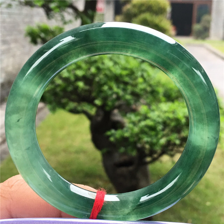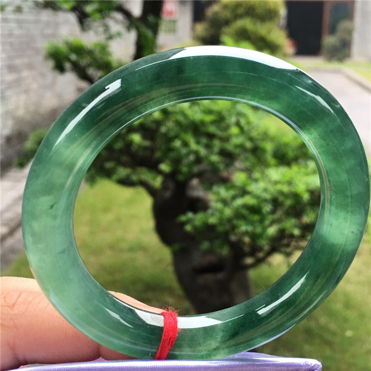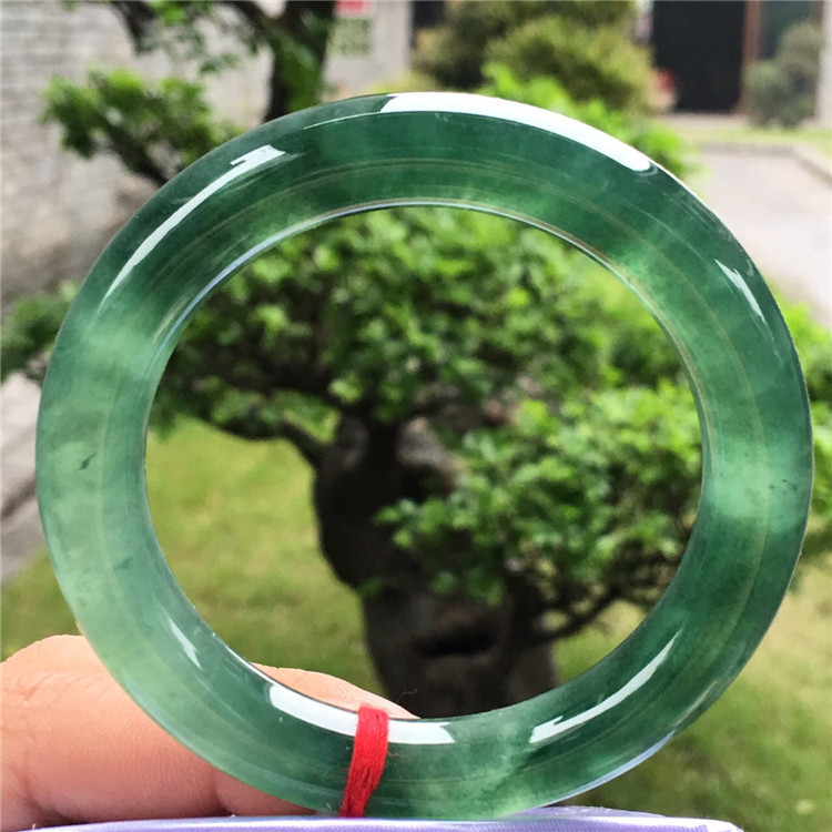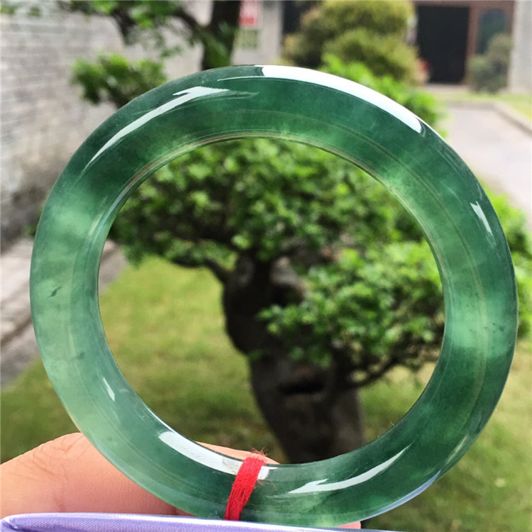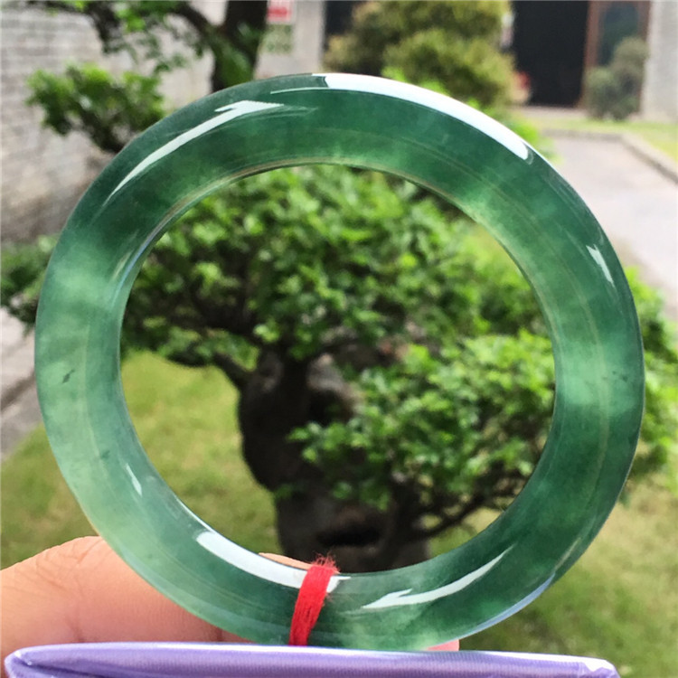 緬甸老坑天然翡翠手鐲女高冰玻璃種滿陽綠色飄花圓條玉手鐲子