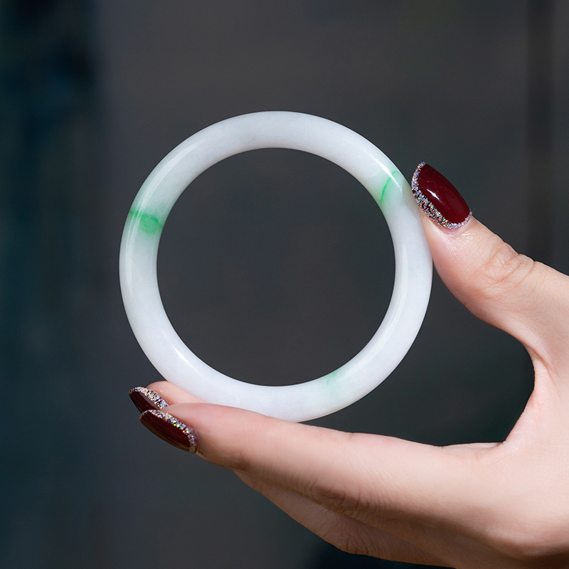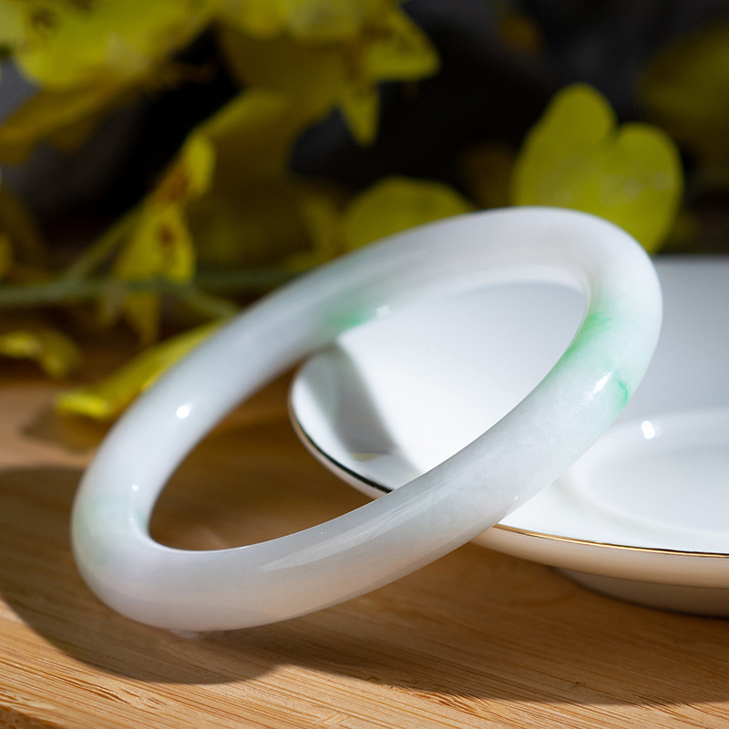 緬甸礦區天然老坑陽綠白底青翡翠手鐲細圓條女款叮噹鐲翡翠玉手鐲