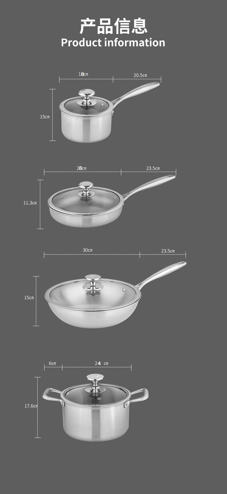套裝配置 30cm炒鍋+24cm湯鍋+28cm煎鍋+18cm嬭鍋