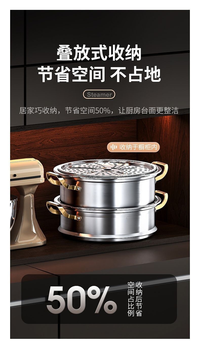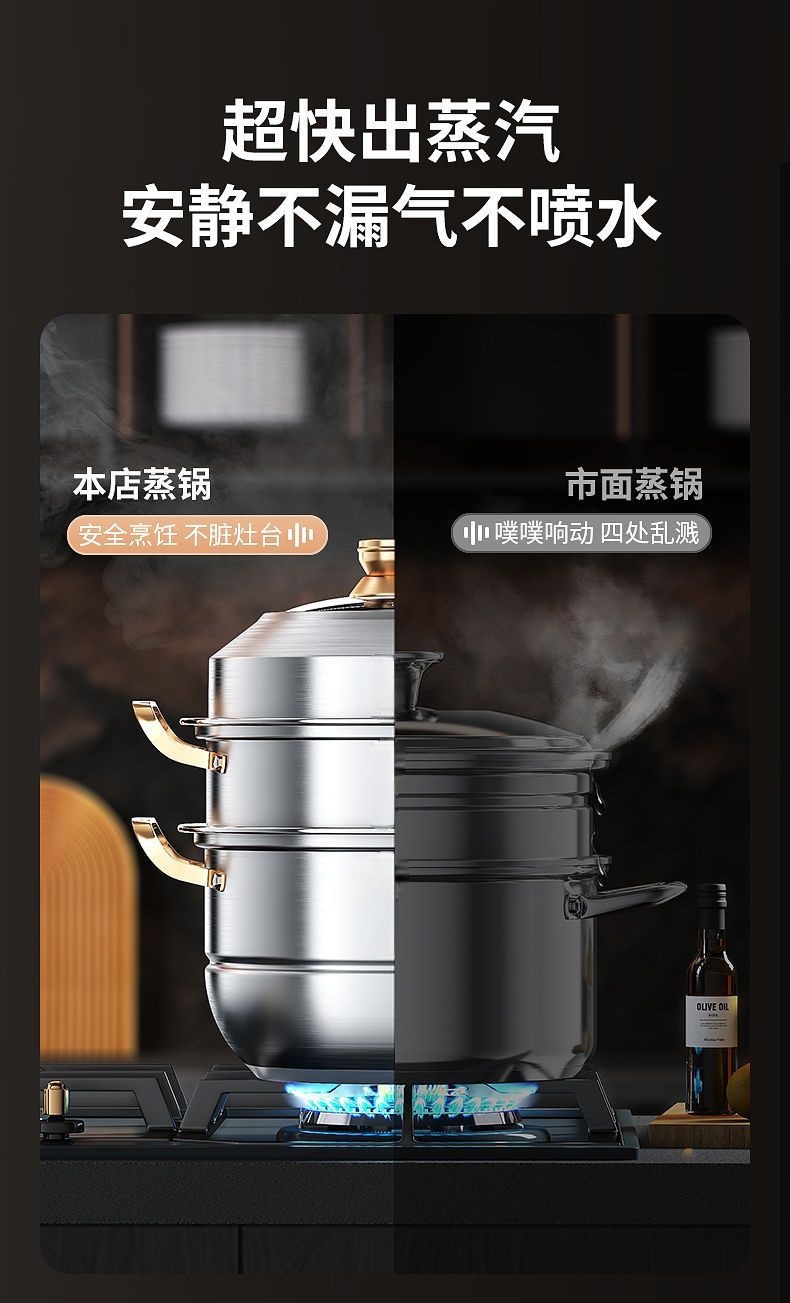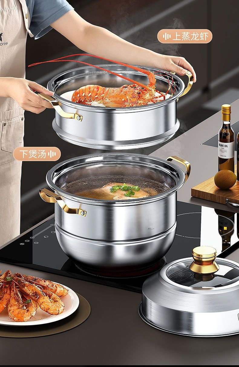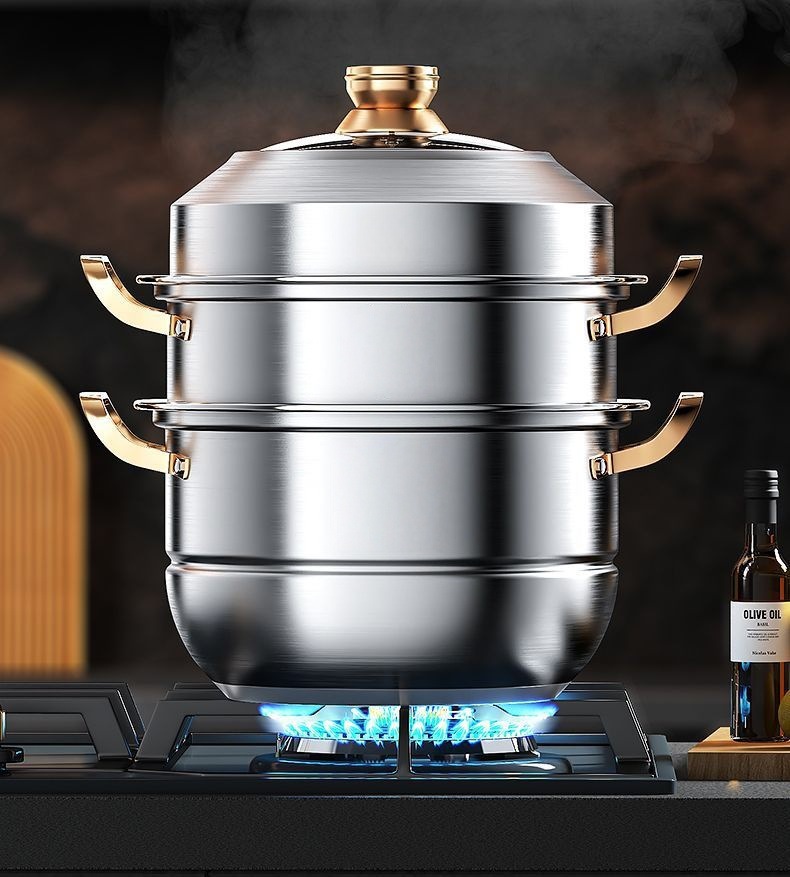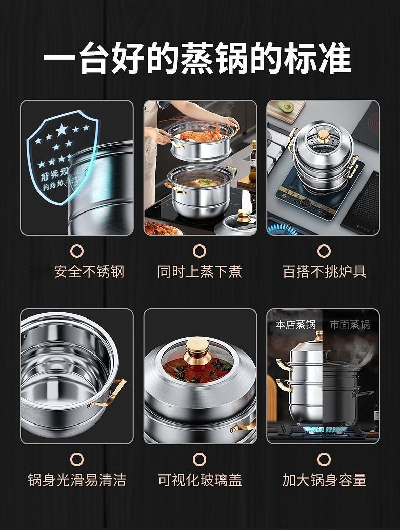 食品級不鏽鋼三層家用加厚蒸籠屜蒸饅頭多層蒸魚加高不鏽鋼蒸鍋