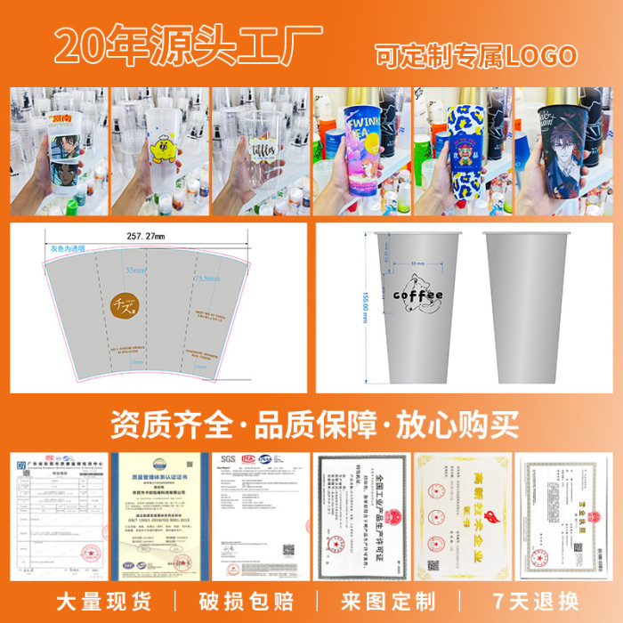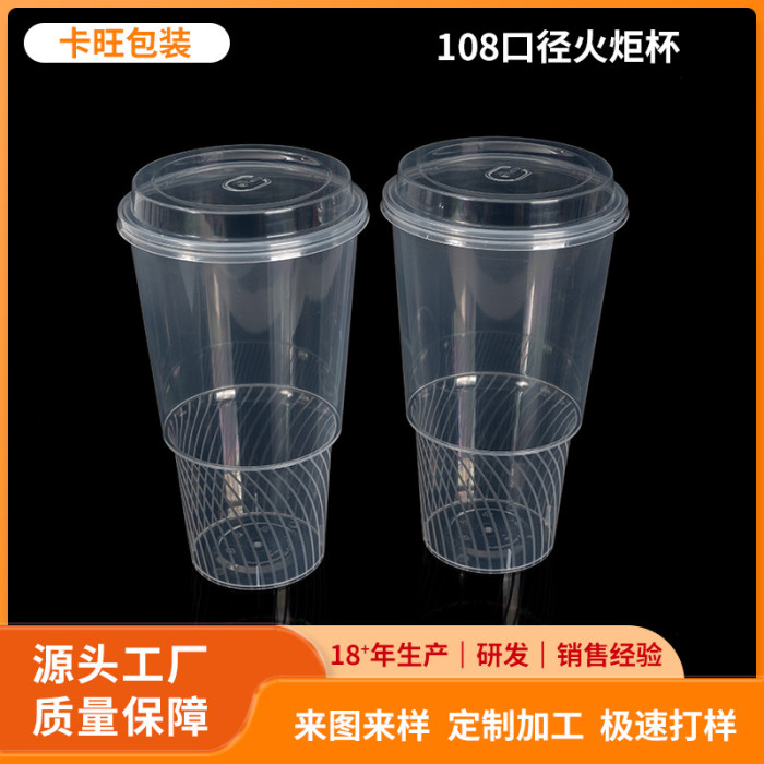 108口徑塑膠火炬飲料杯1000大容量奶茶店食品級奶茶網紅杯加厚
