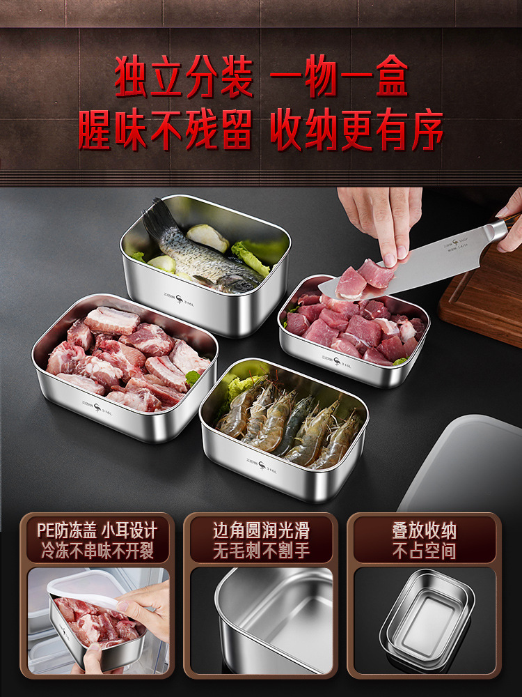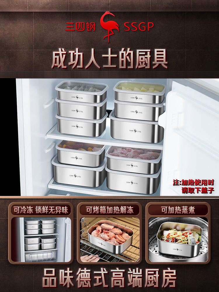 三四鋼® 316L不鏽鋼保鮮盒 長方形帶蓋加厚密封水果收納盒專用