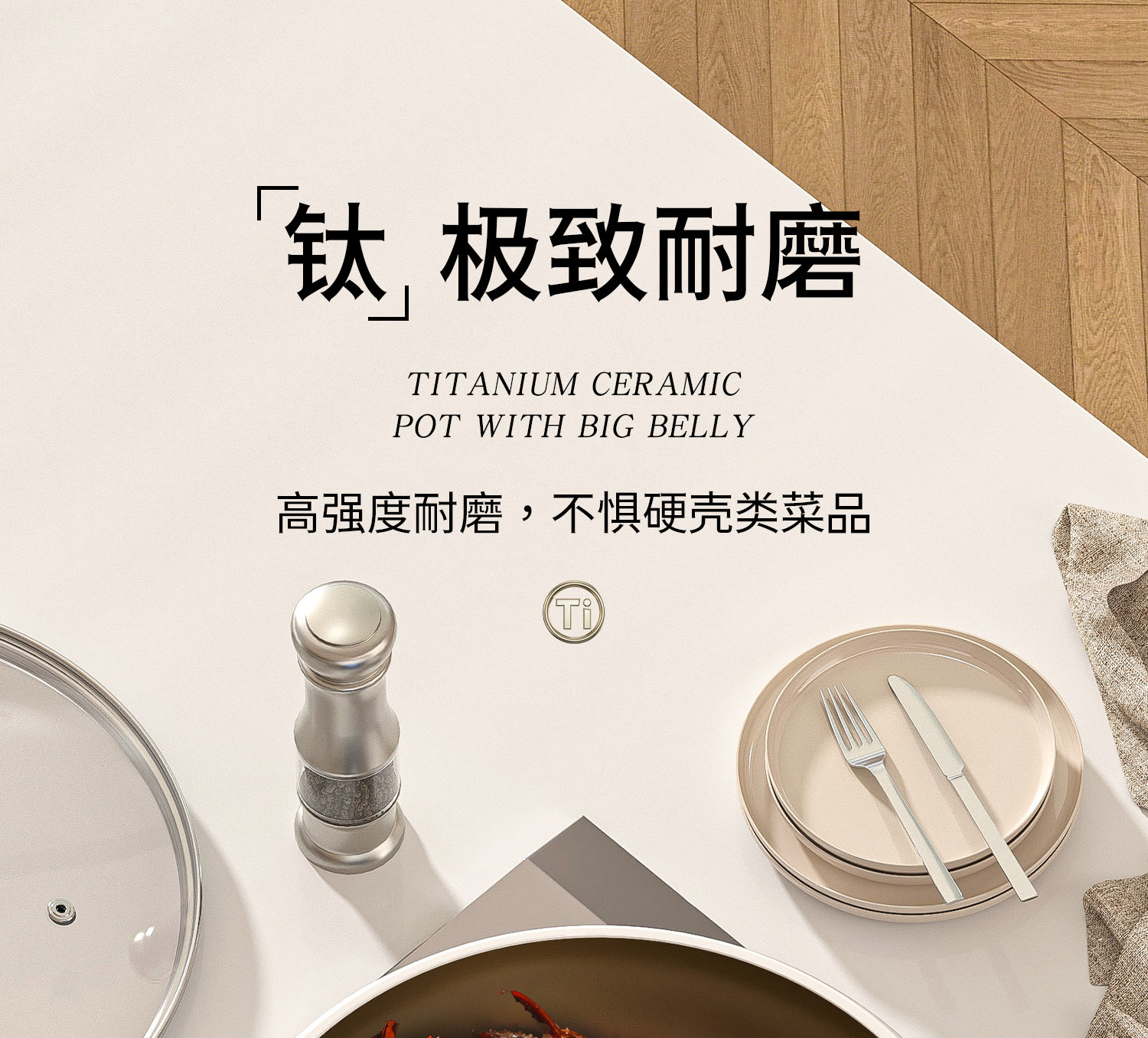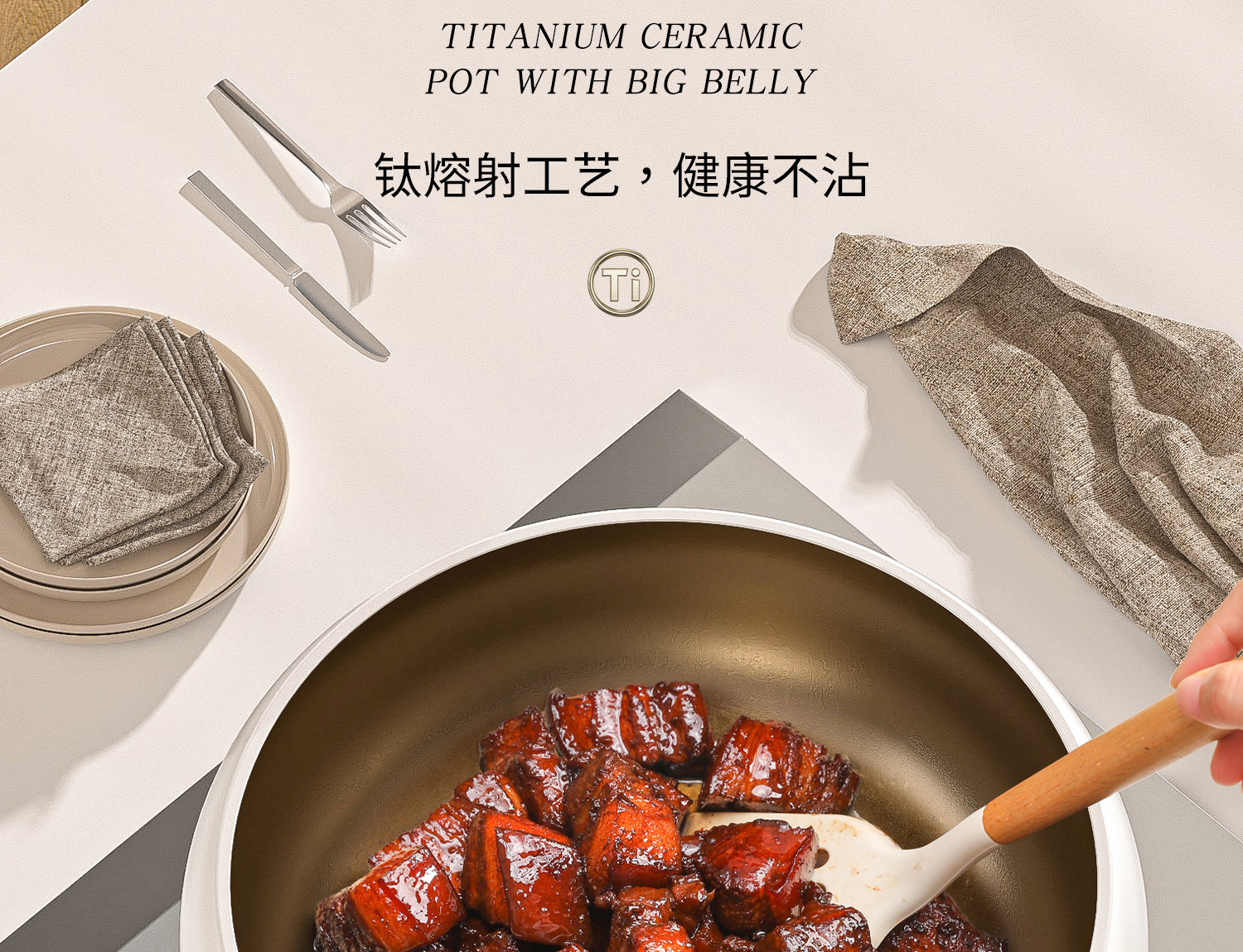 鈦陶瓷大肚鍋不沾鍋炒鍋家用不沾鈦鍋平底炒菜鍋瓦斯電磁爐專用