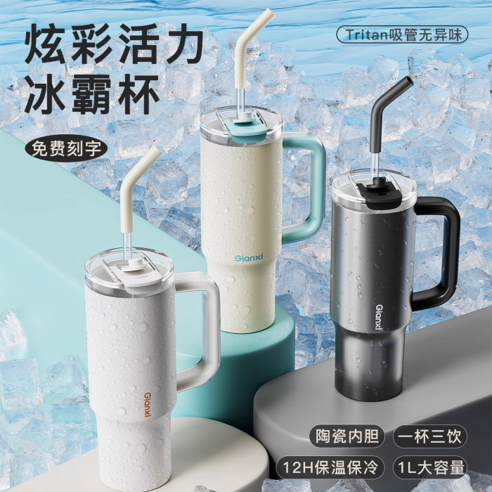捷安璽巨無霸水杯大容量吸琯杯子大號保溫杯女生高顔值保冷冰霸杯