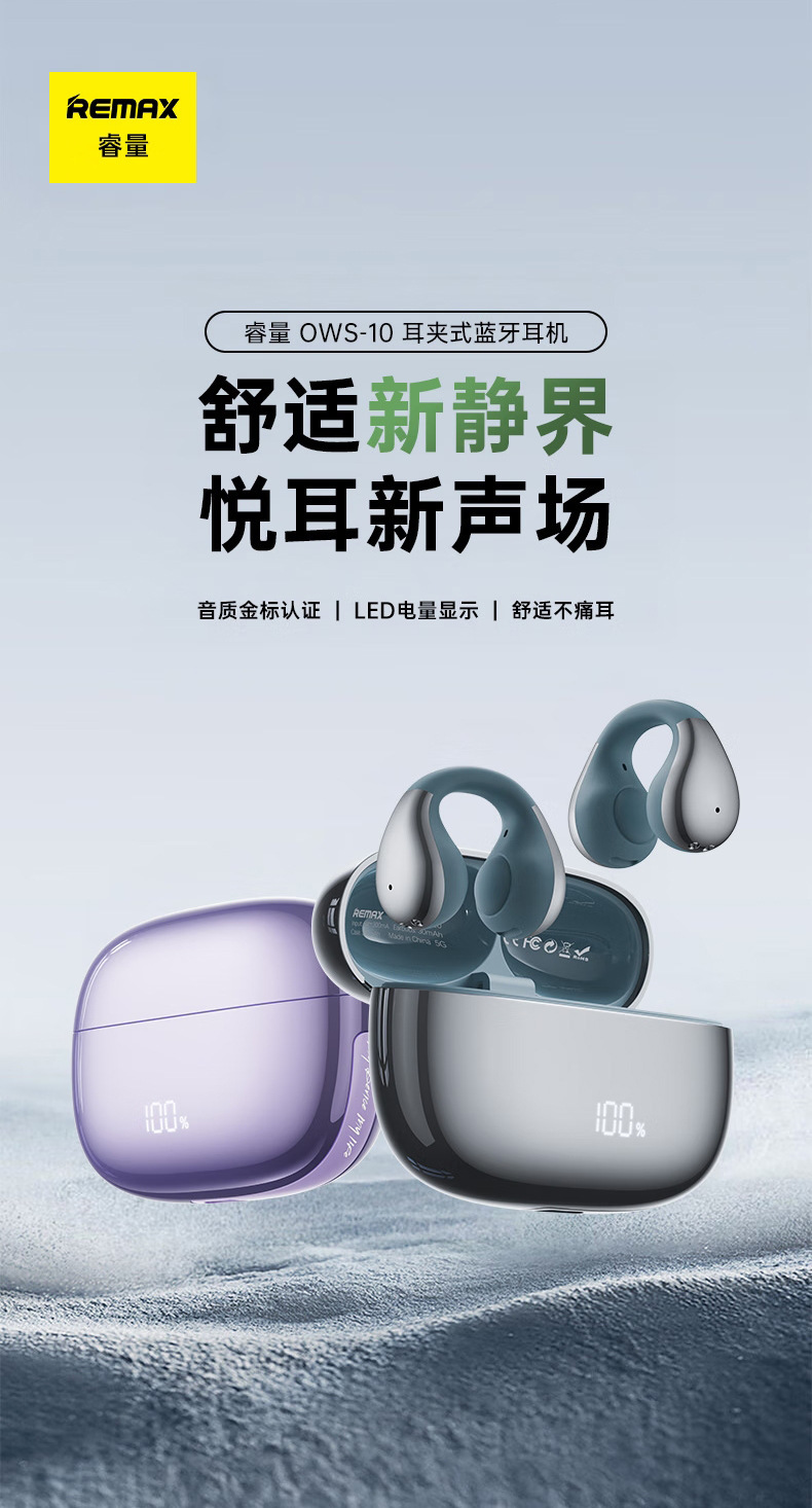 remax睿量2025新款夾耳式立體聲藍牙6.0低延遲無線通話藍牙耳機