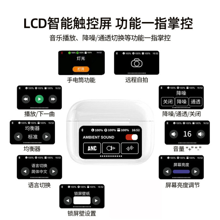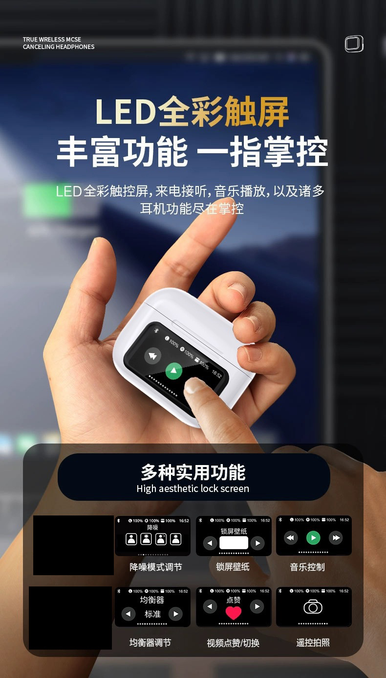新款a9pro藍牙耳機全彩觸控螢幕超長續航ANC降噪無線款