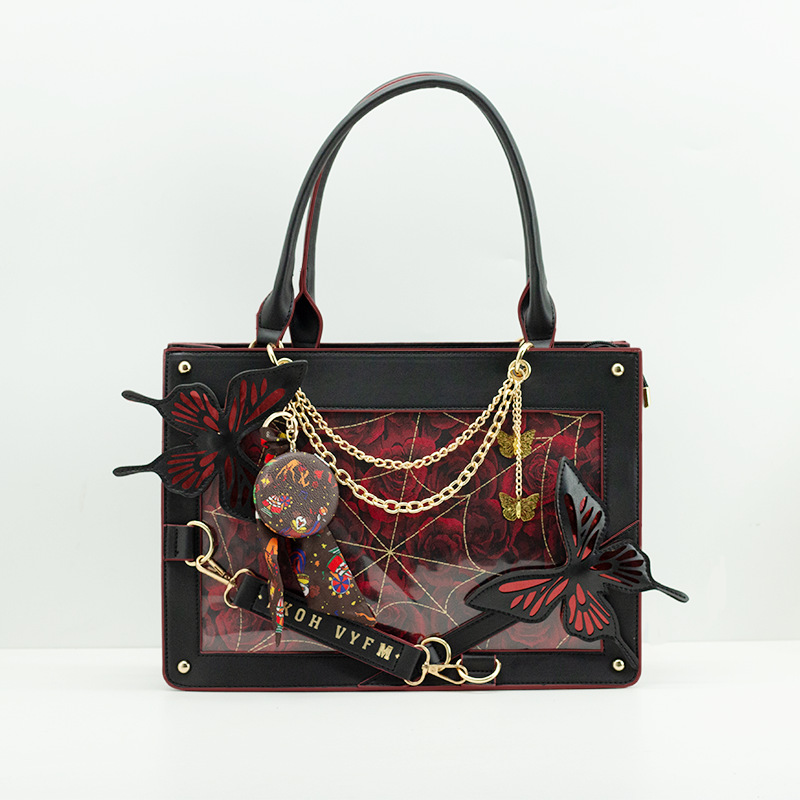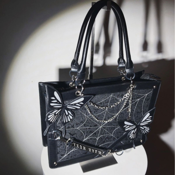 暗黑風迷宮蝴蝶痛包托特包迷宮蝴蝶疼痛包 Toth 女孩手持橫身包哥
