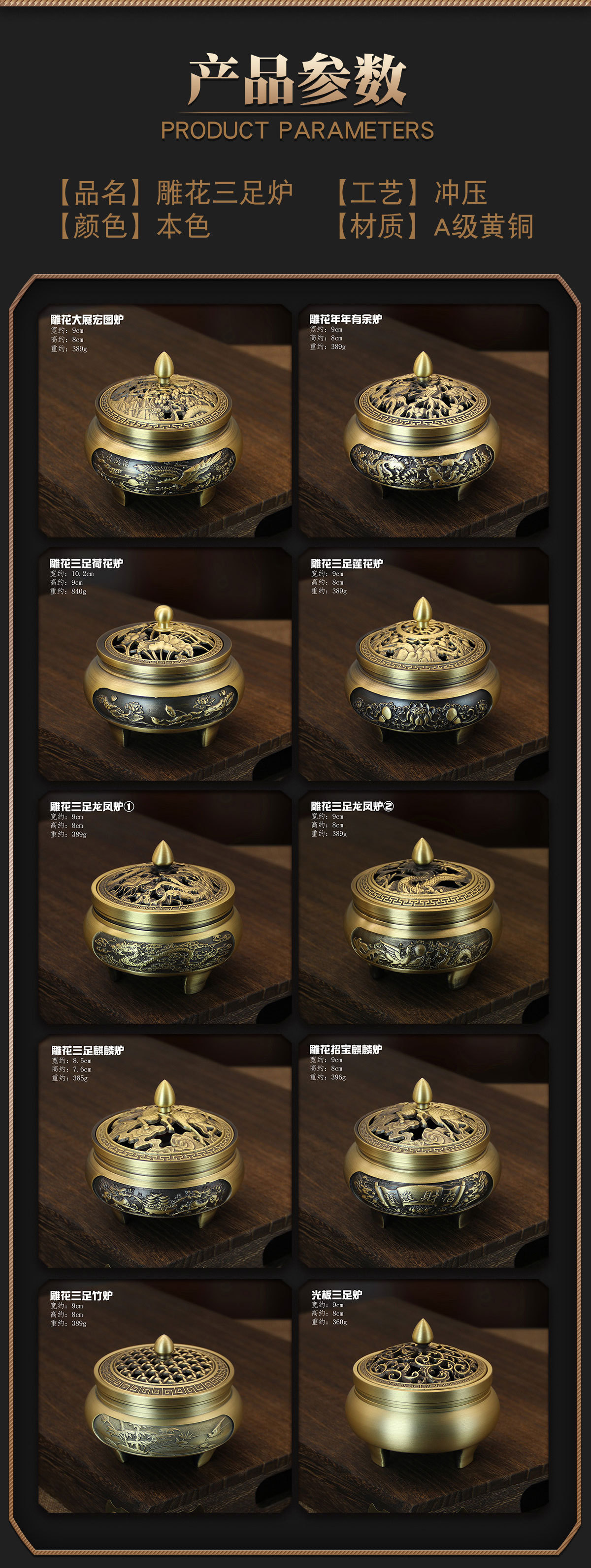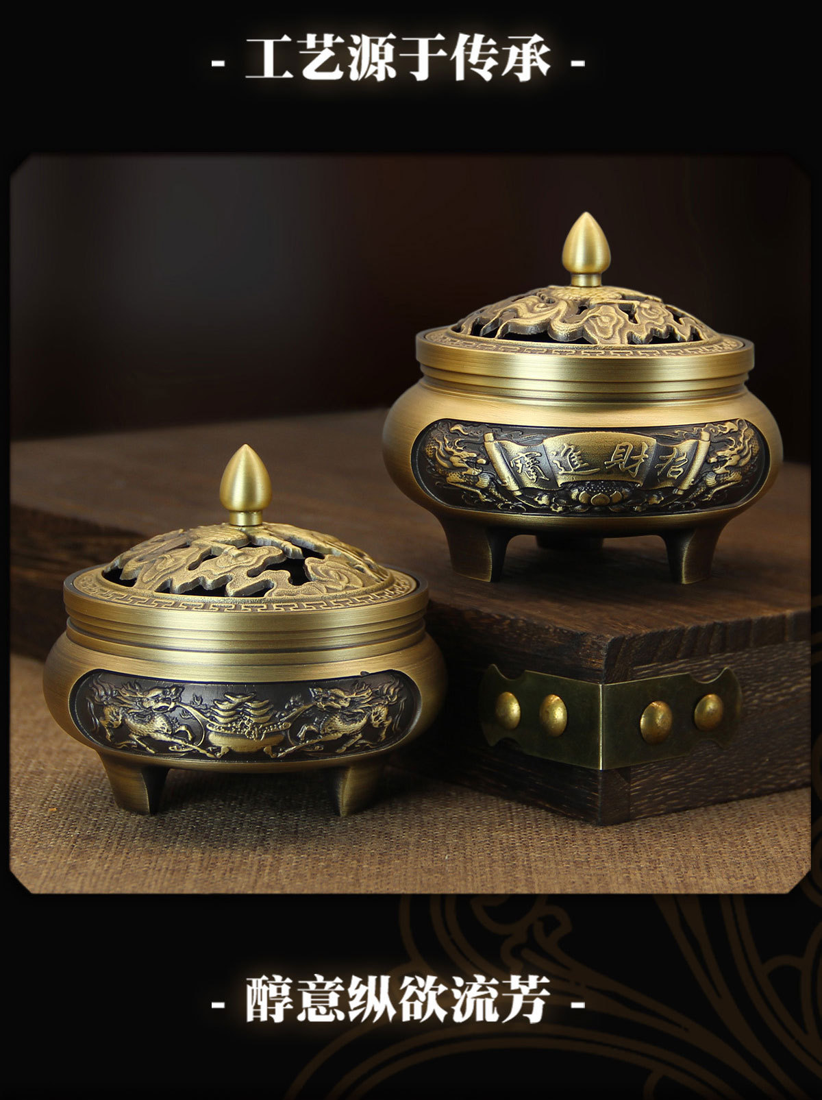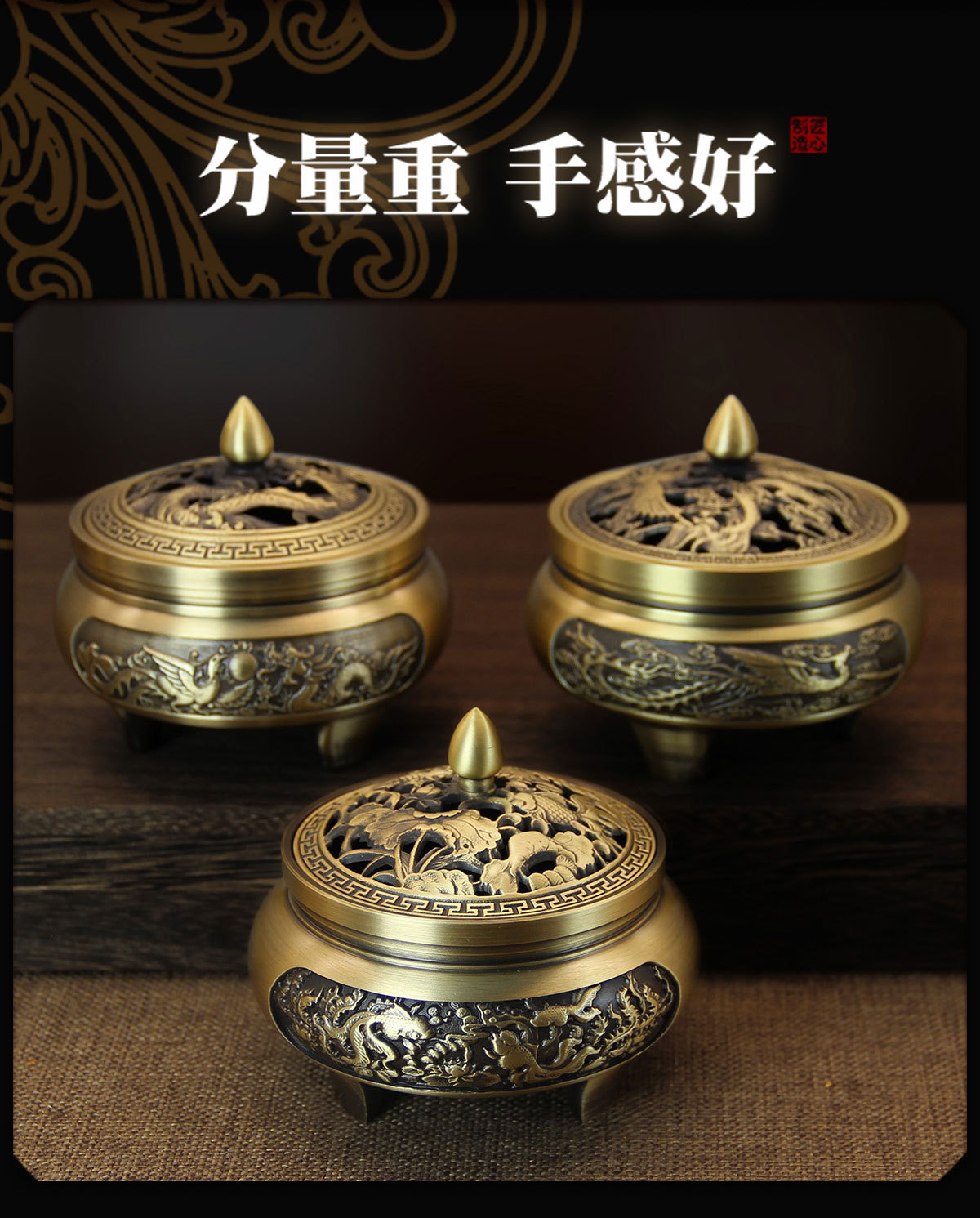 黃銅精雕三足爐龍鳳雕花檀香爐燻香爐家用辦公室香道香爐