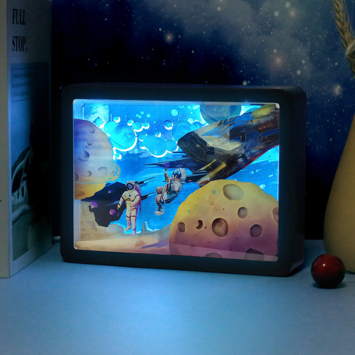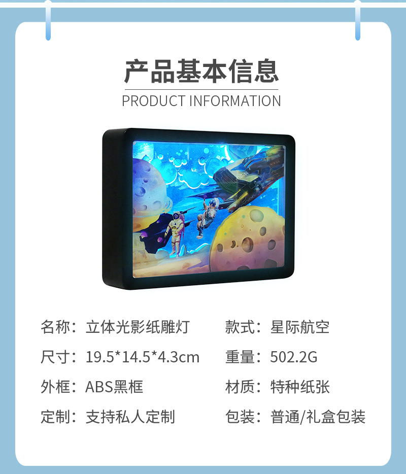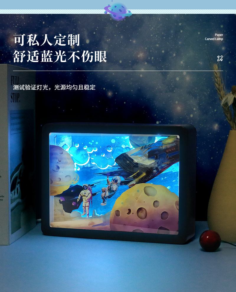 鏡面紙雕燈創意禮物臥室裝飾燈鏡子古風浪圍小夜燈床頭燈
