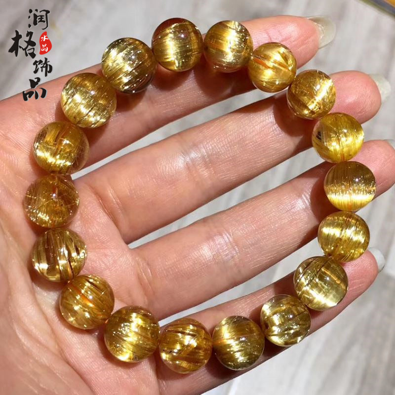 巴西珍藏級鈦晶手鏈金髮晶手鏈鈦金黃髮晶男女手串黃水晶手鏈飾品