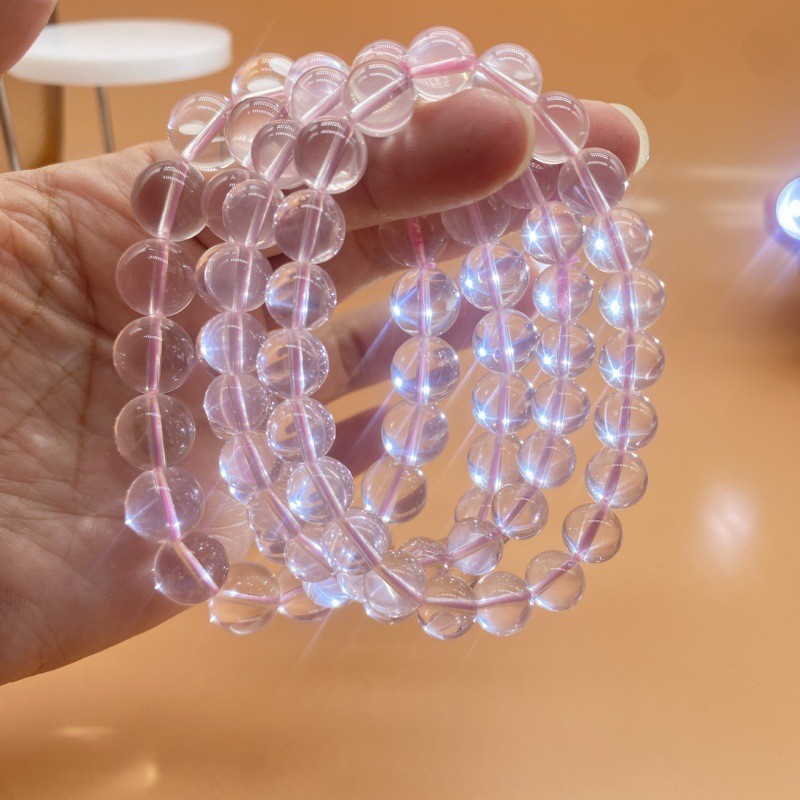 天然水晶六芒星粉晶手串白水體粉水晶手鏈女老礦馬粉珠寶首飾