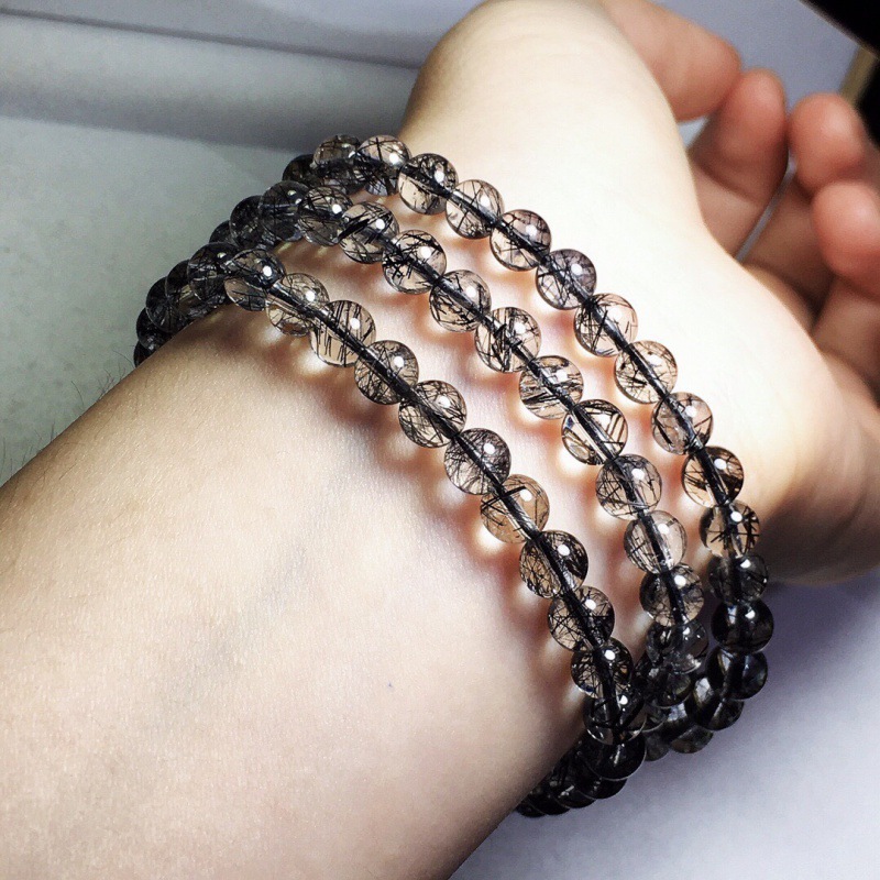 天然巴西黑髮晶多圈手鏈男女手串時尚清新百搭款生日禮物節日禮品