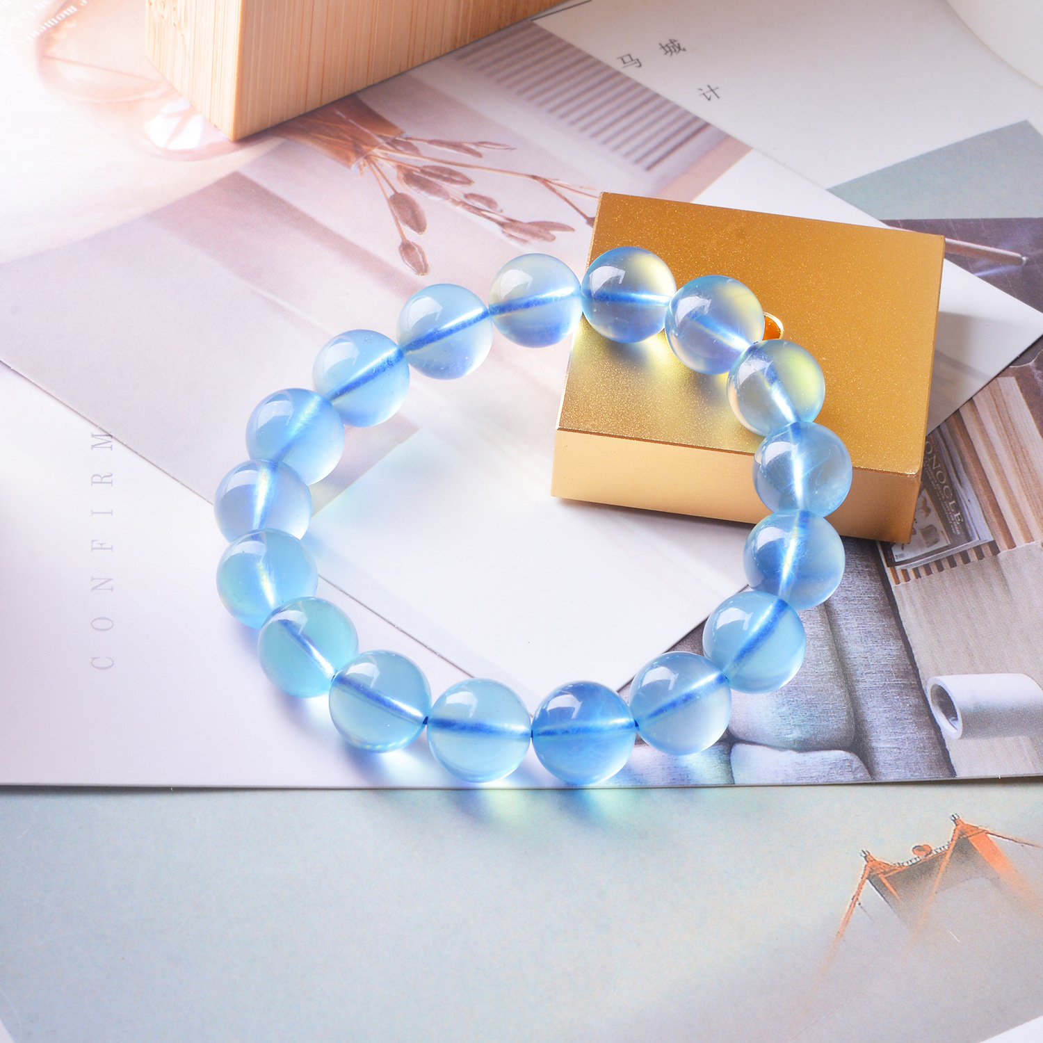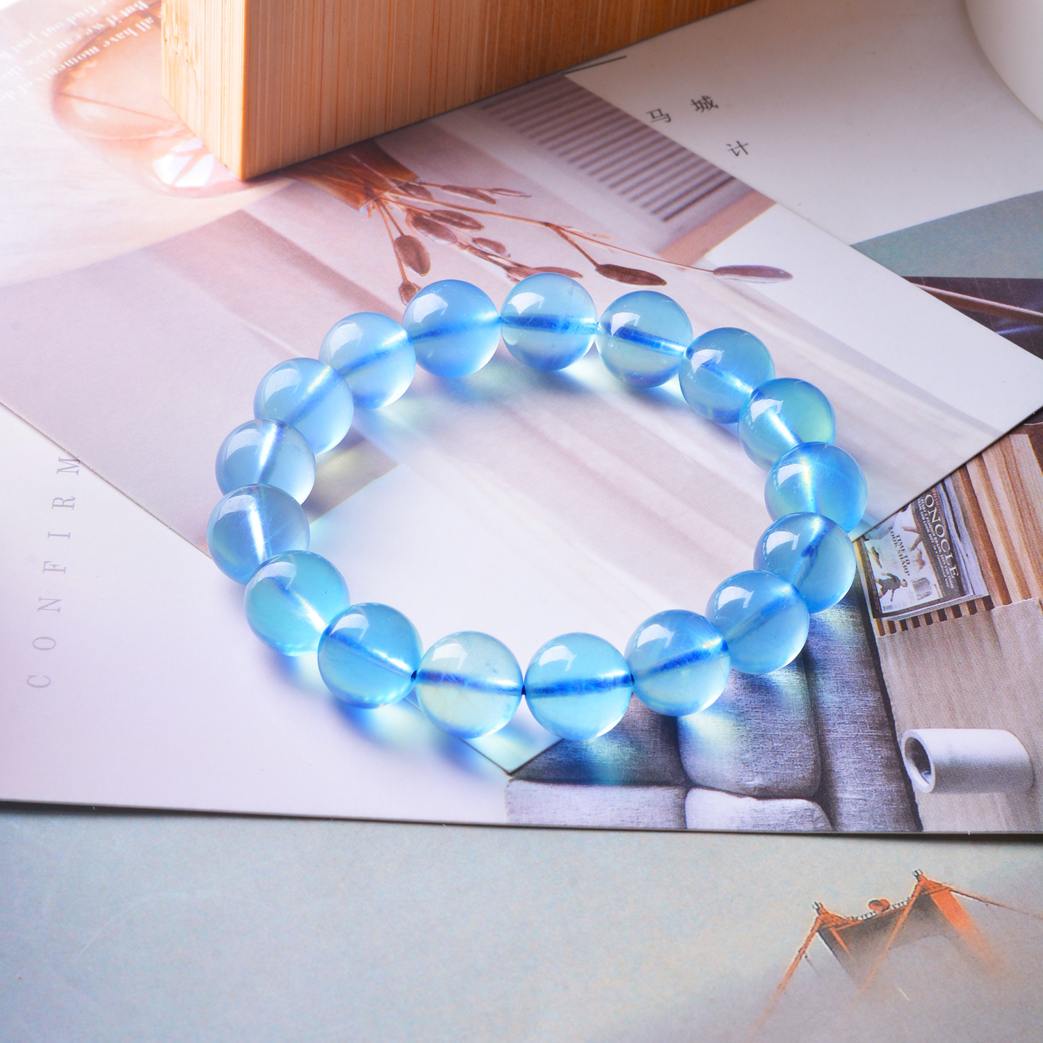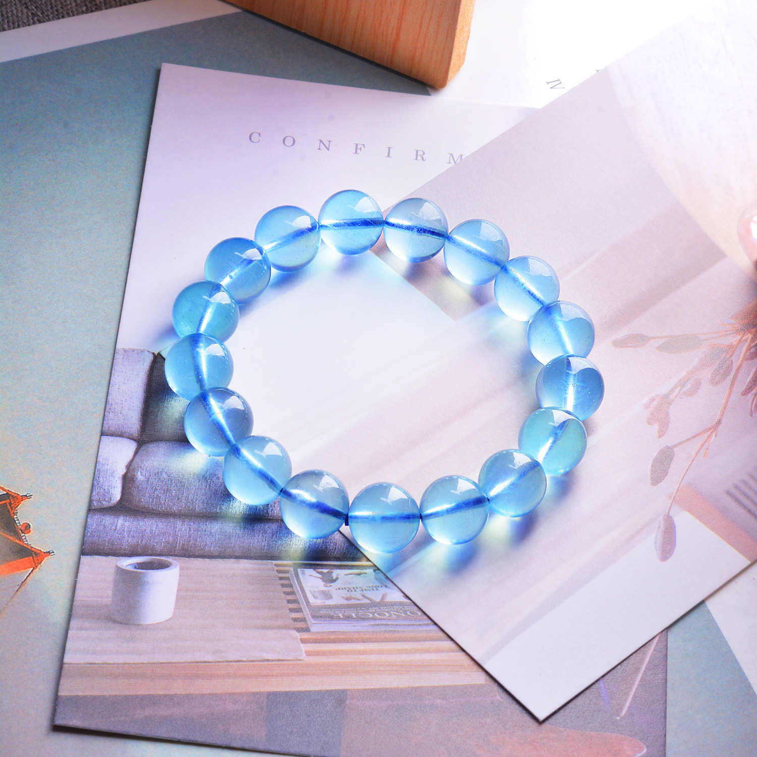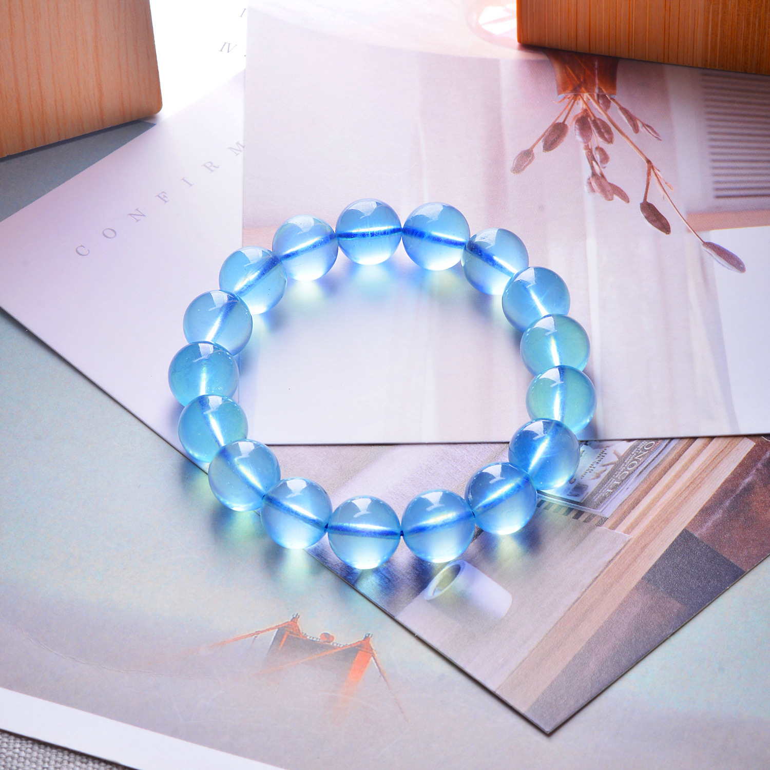 巴西天然海藍寶手鏈深藍色冰種海藍寶手串飾品海藍寶水晶珠子男女