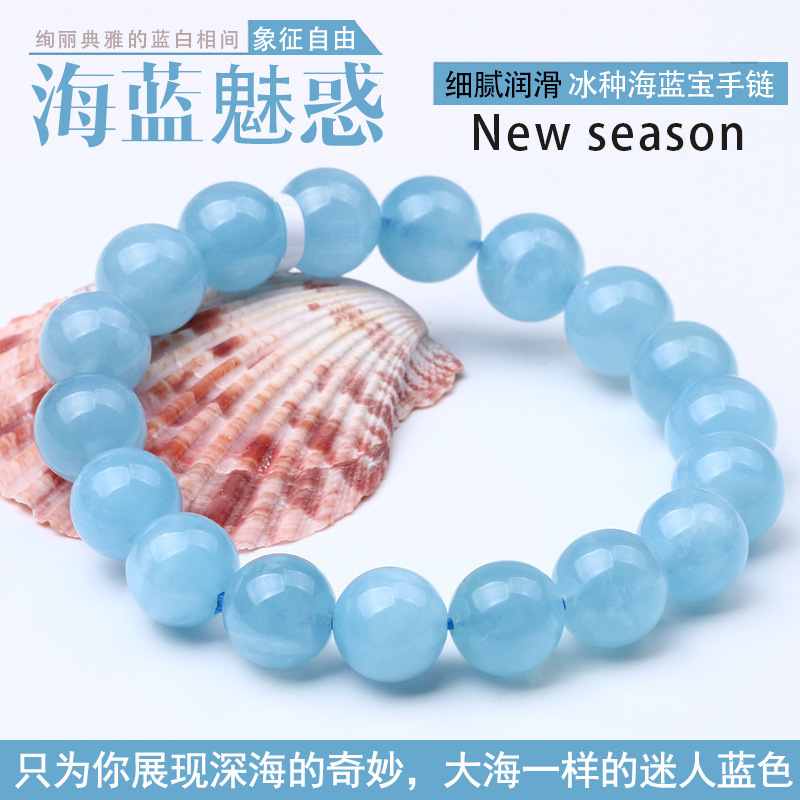 天然海藍寶手鏈男女情侶款單圈素手鏈海藍寶手串藍水晶母親節禮物
