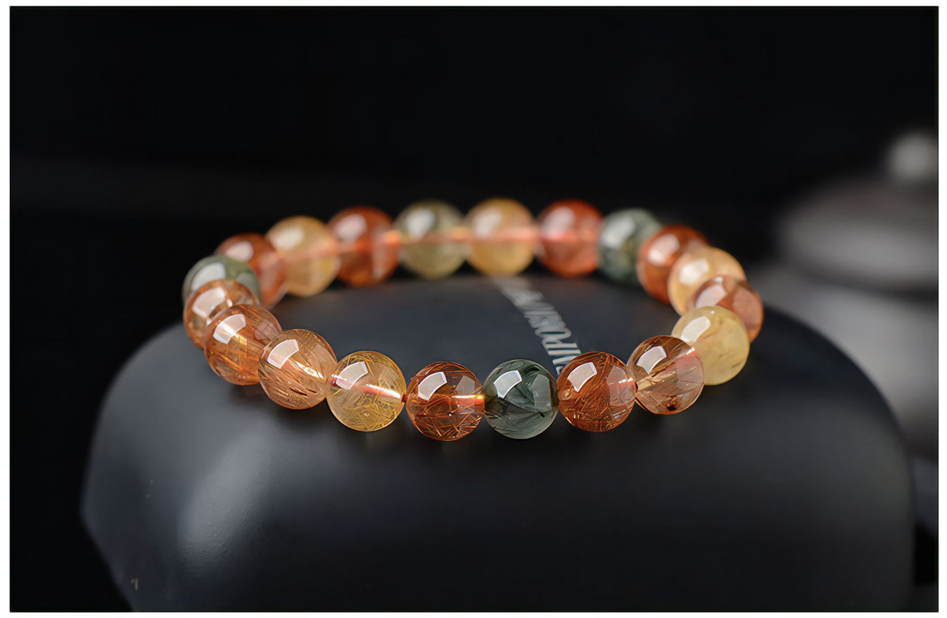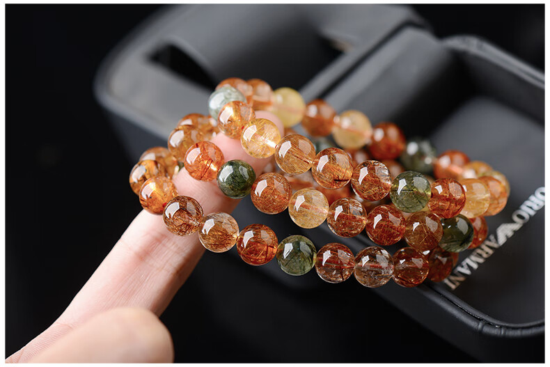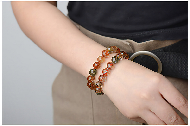 原礦天然彩髮晶手鏈男女款福祿壽單圈銅髮晶手串圓珠飾品