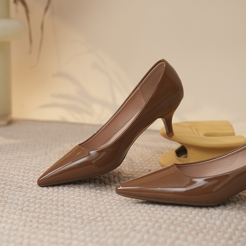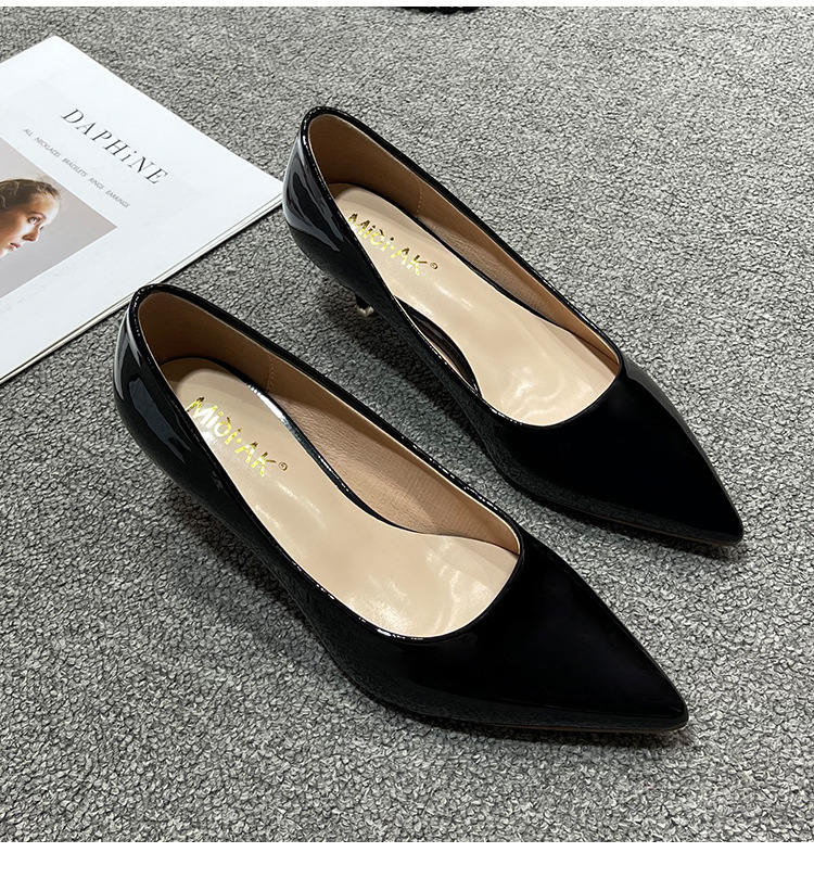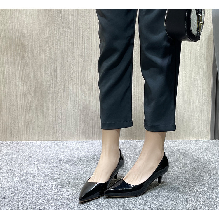 職業高跟鞋女尖頭淺口大碼單鞋超纖黑色中跟細跟ol空姐正裝工作鞋