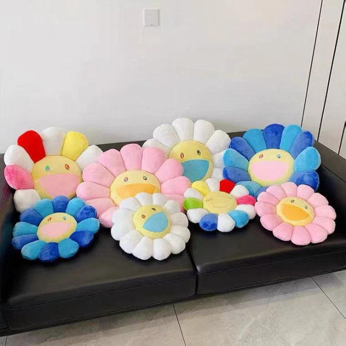 潮牌村上隆七彩太陽花抱枕潮流擺件沙發坐墊靠墊毛絨玩具家居裝飾