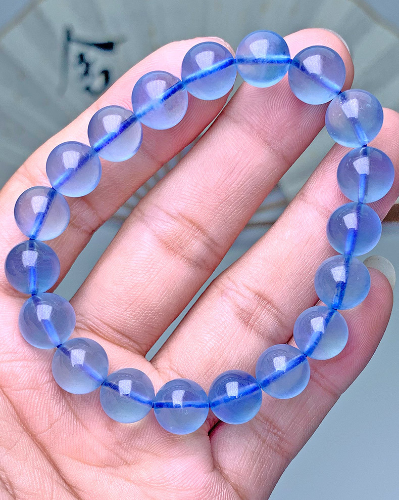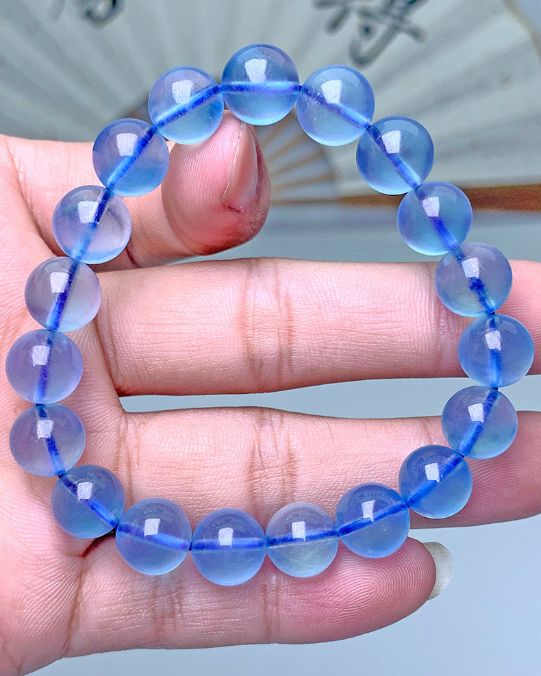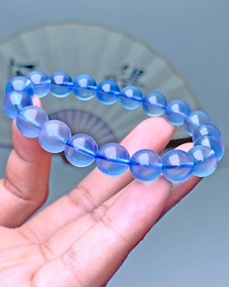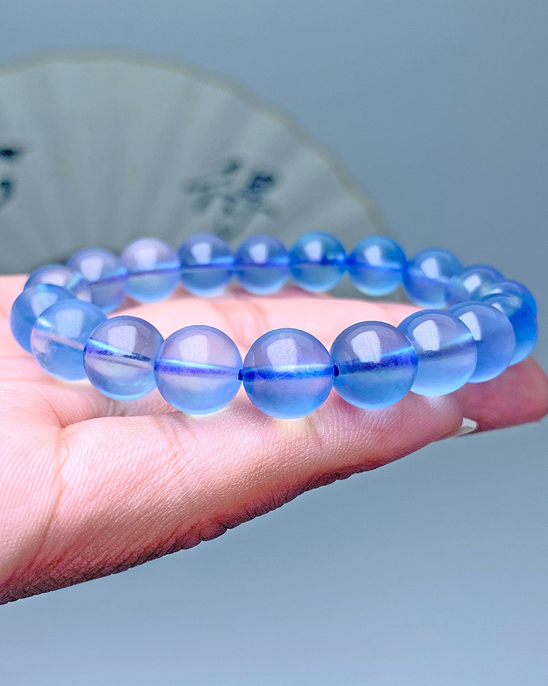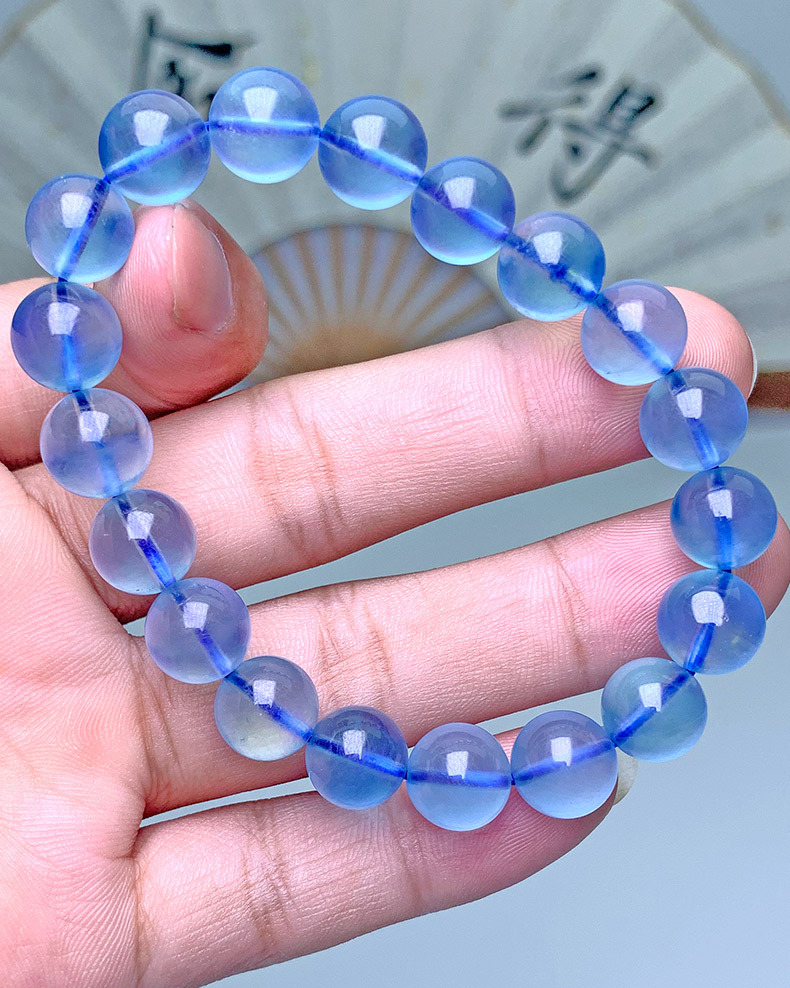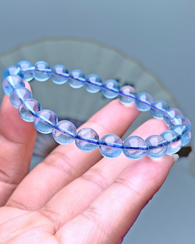 天然巴西海藍寶手串巴西深藍色高冰種圓珠海藍寶手鏈飾品