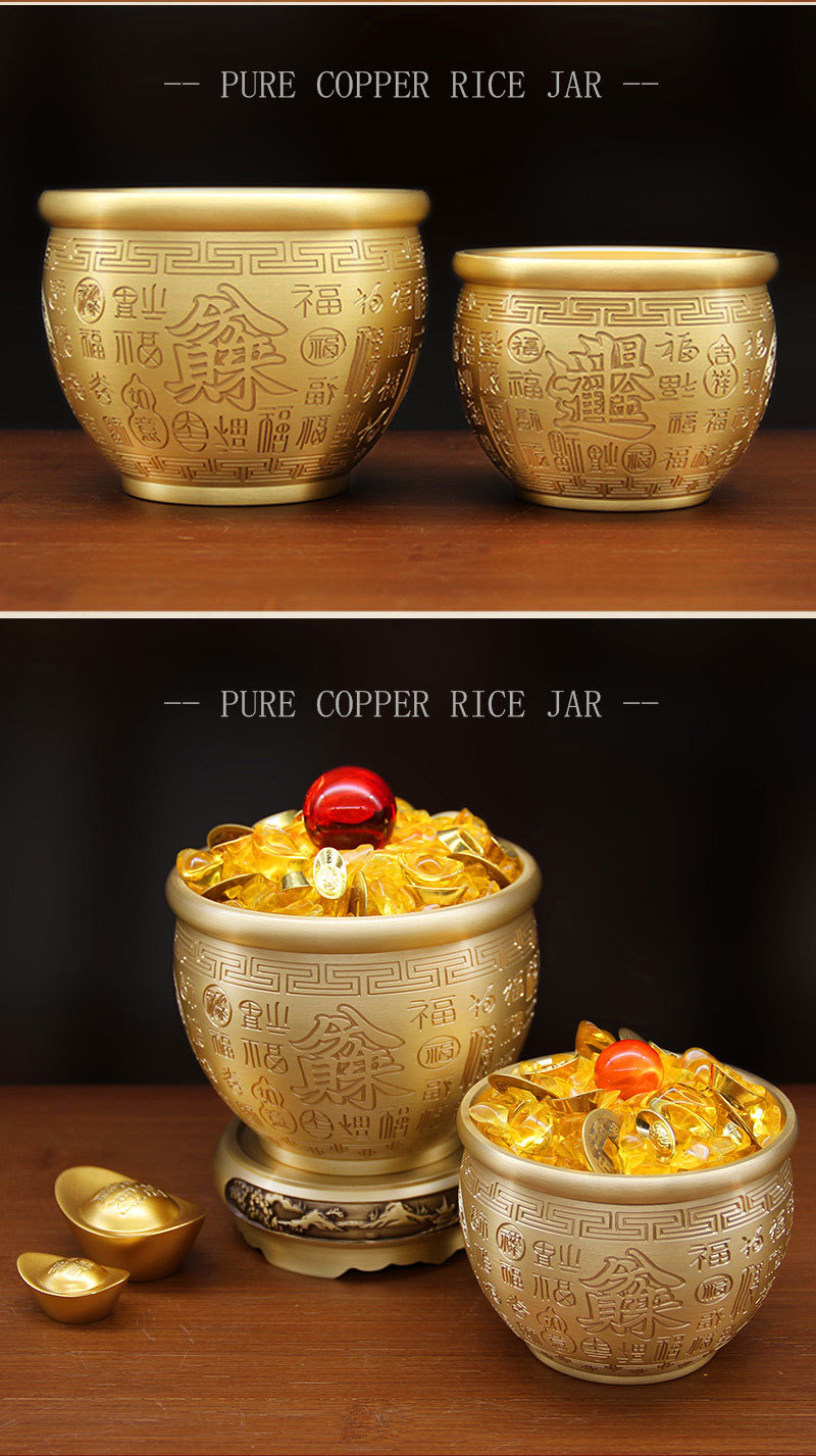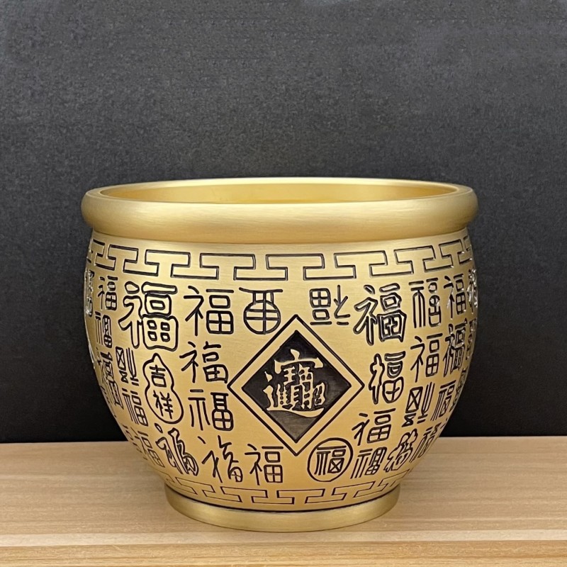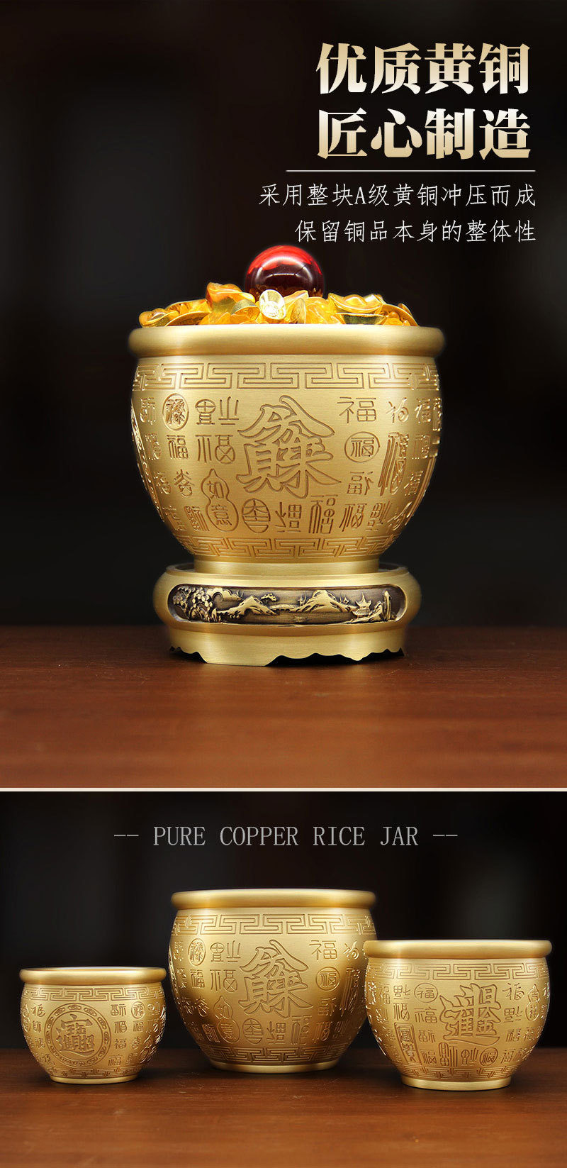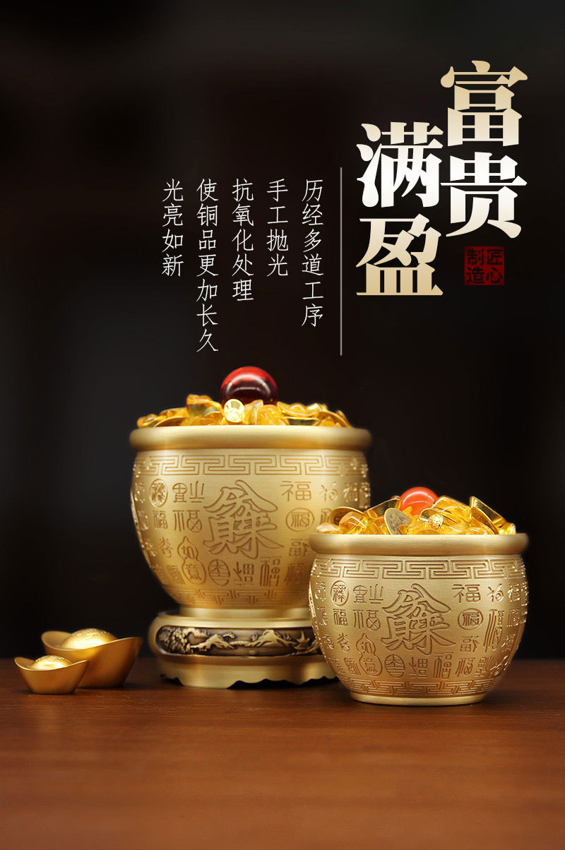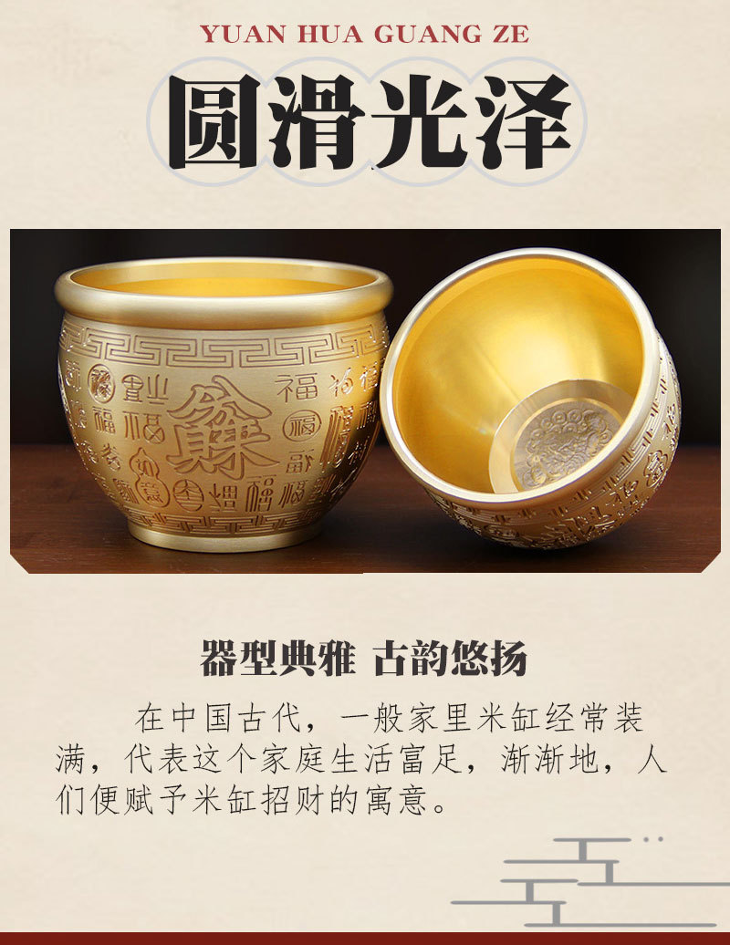 黃銅米缸聚寶缸聚米百福缸聚寶盆桌面小擺件菸灰缸書房裝飾品工藝