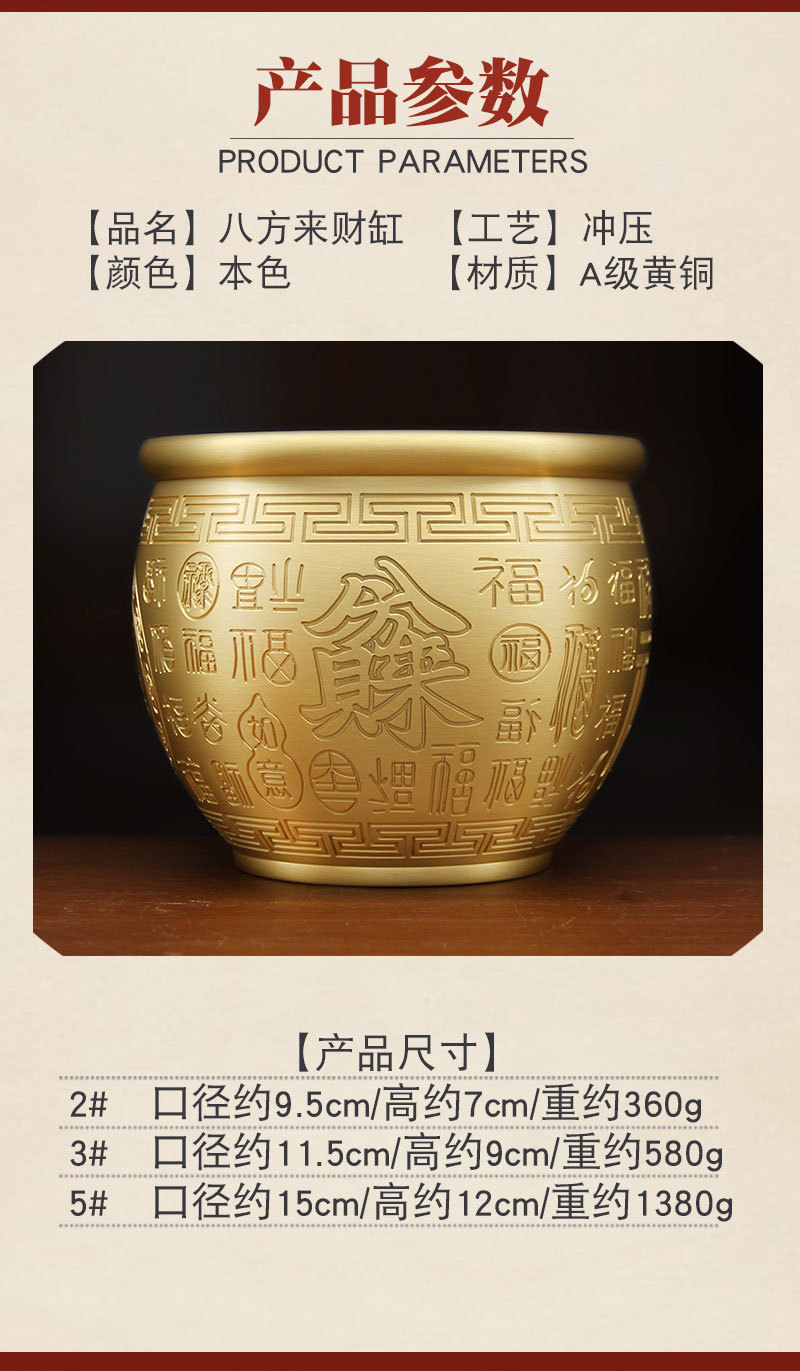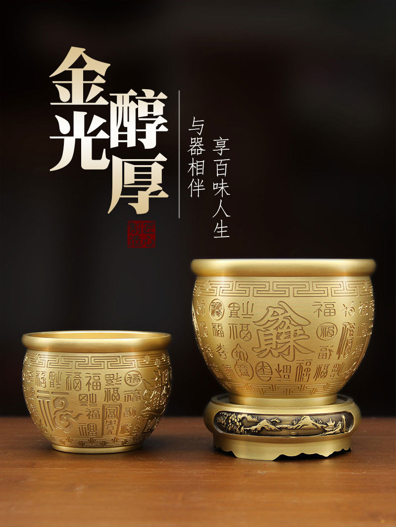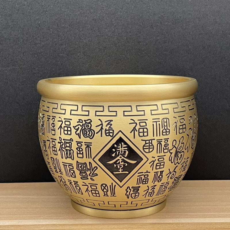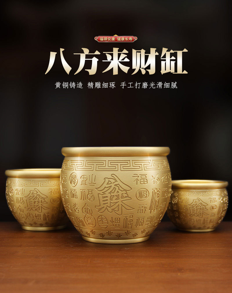 黃銅米缸聚寶缸聚米百福缸聚寶盆桌面小擺件菸灰缸書房裝飾品工藝