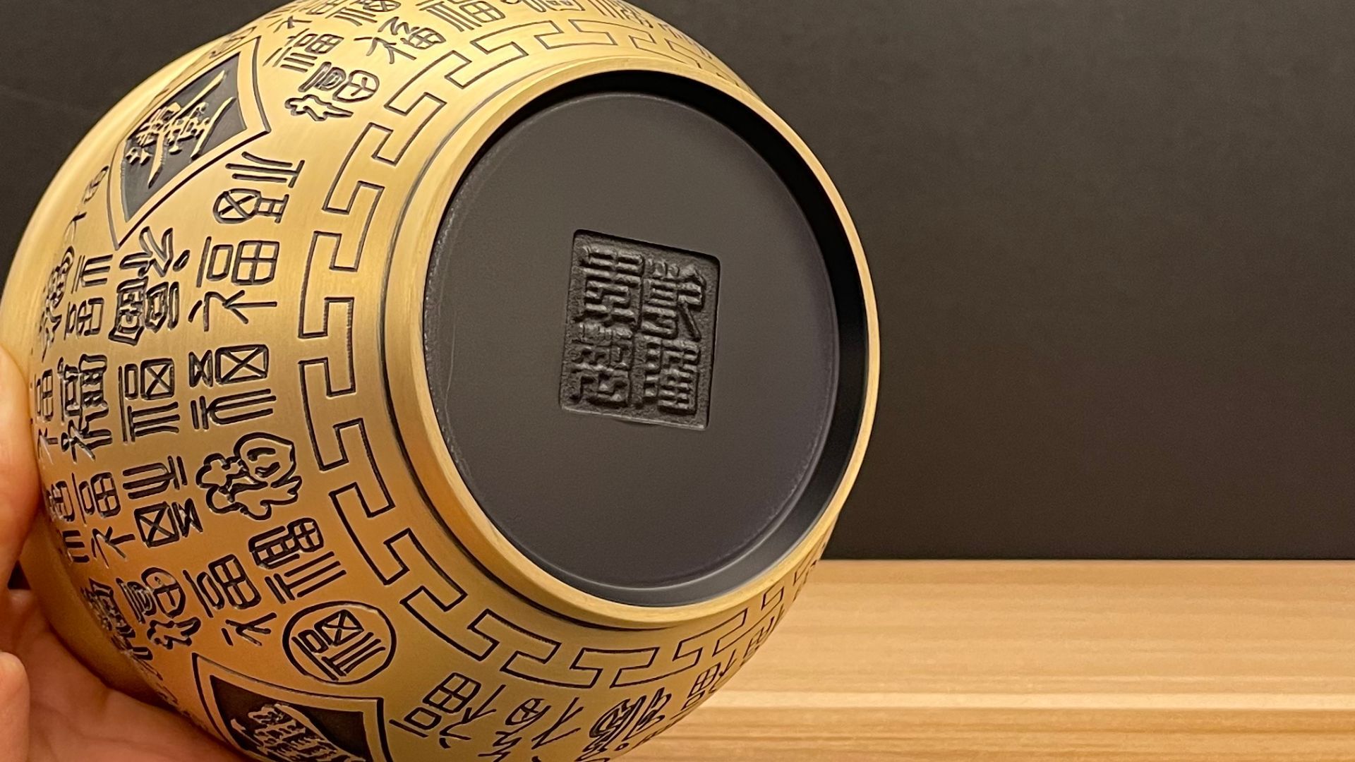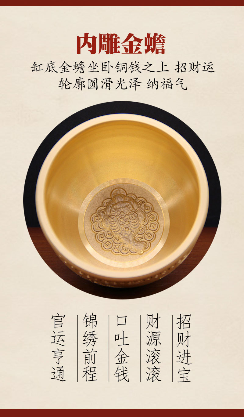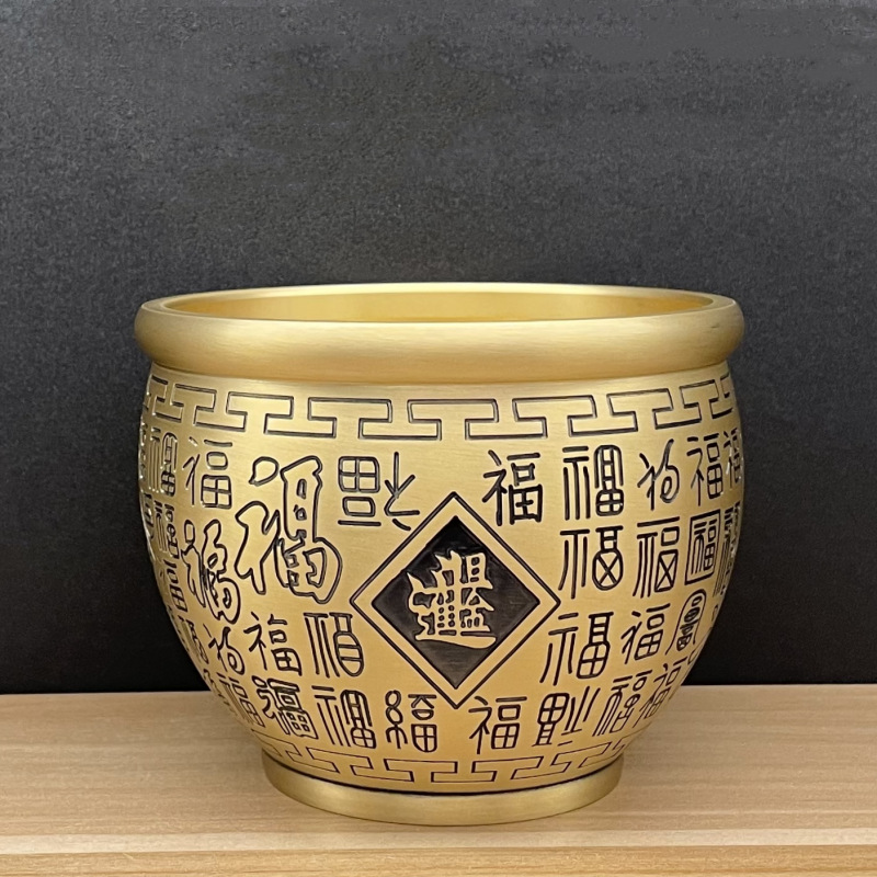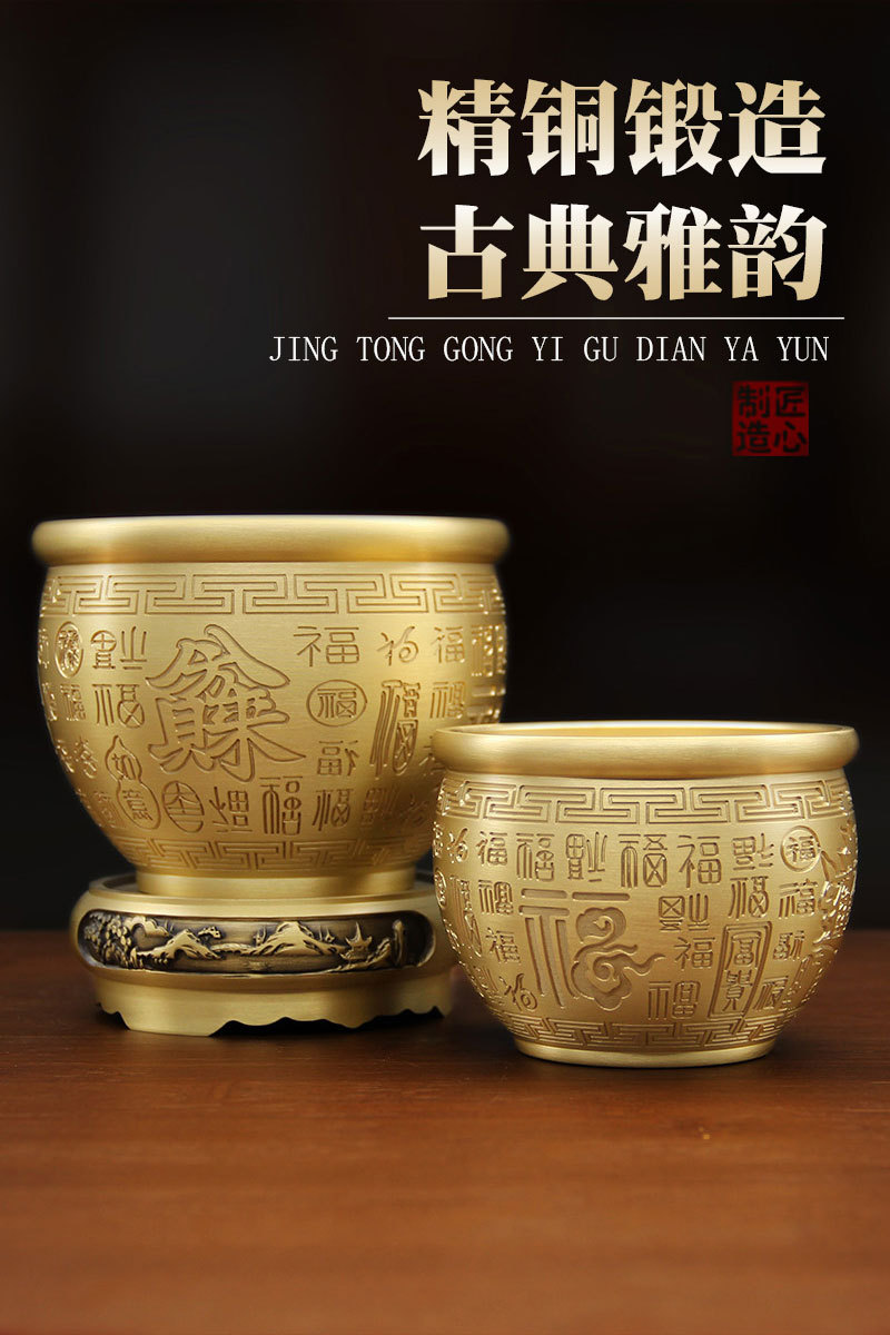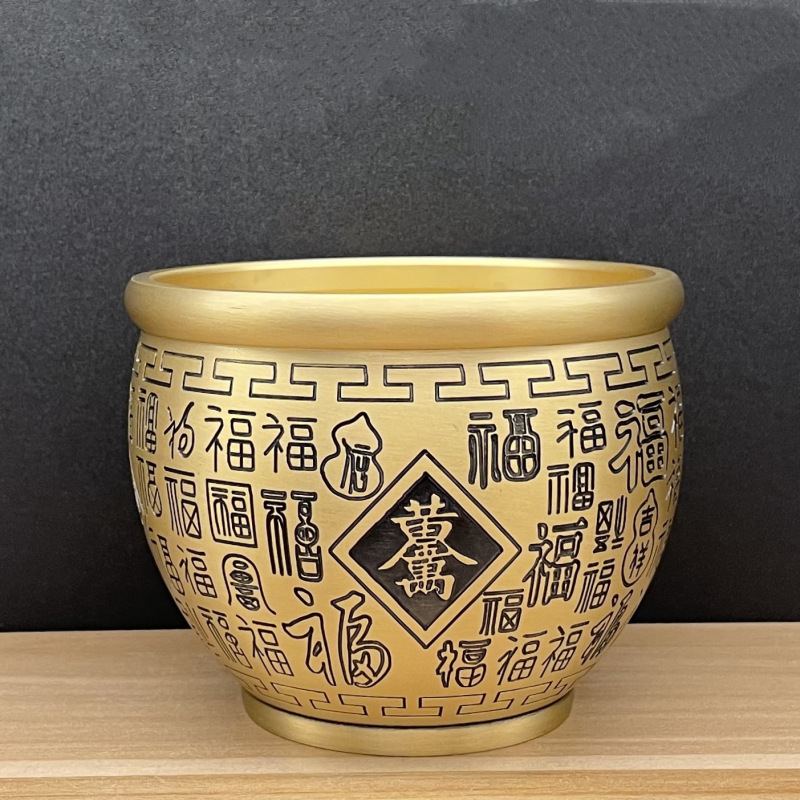 黃銅米缸聚寶缸聚米百福缸聚寶盆桌面小擺件菸灰缸書房裝飾品工藝