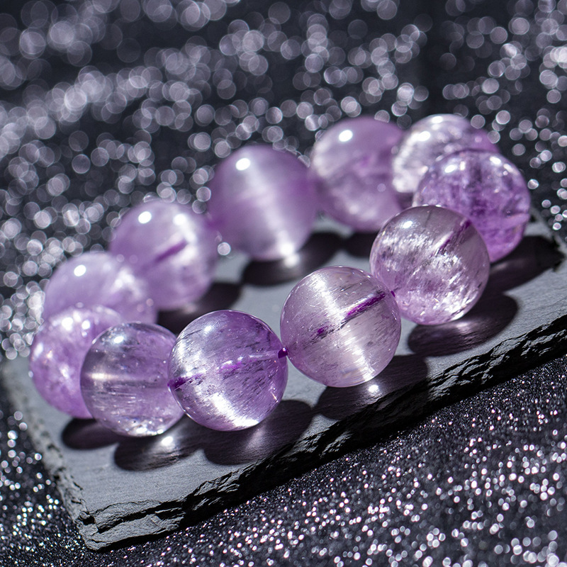 天然紫鋰煇手鏈冰種老礦料鋰煇石拉絲一線眼強光淨體貓眼手串飾品