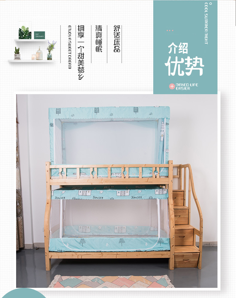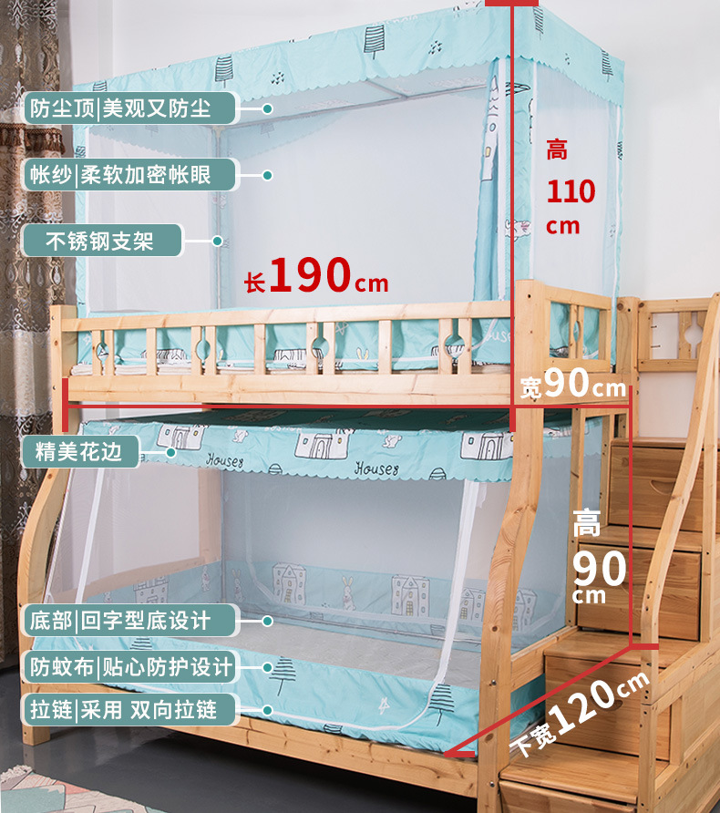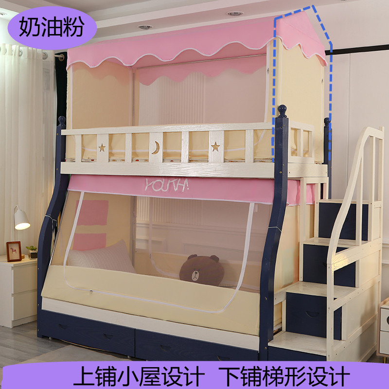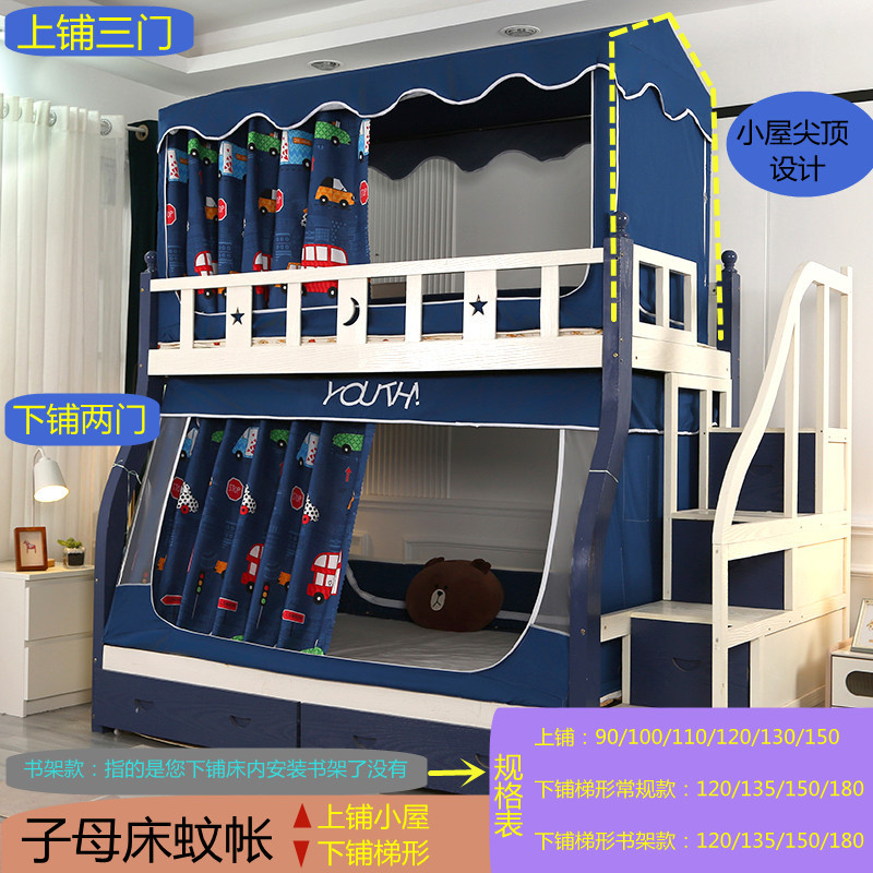 子母床蚊帳下鋪專用梯形小屋蚊帳家用上下床宿捨床簾遮光上鋪蚊帳