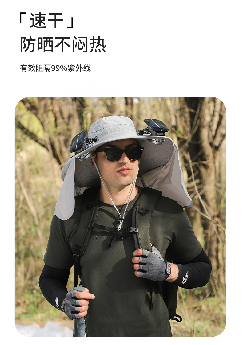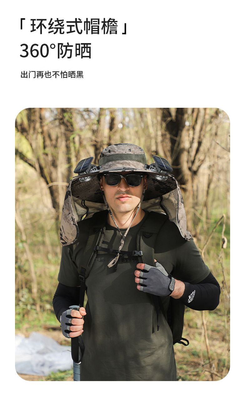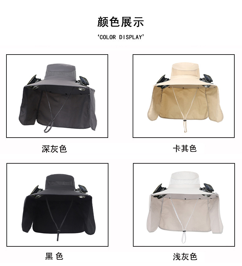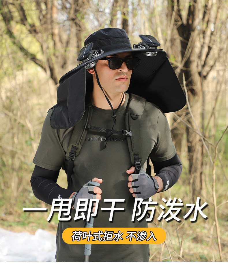 大披肩遮陽帽護脖夏季防曬男士戶外漁夫帽大風力太陽能可充電風扇