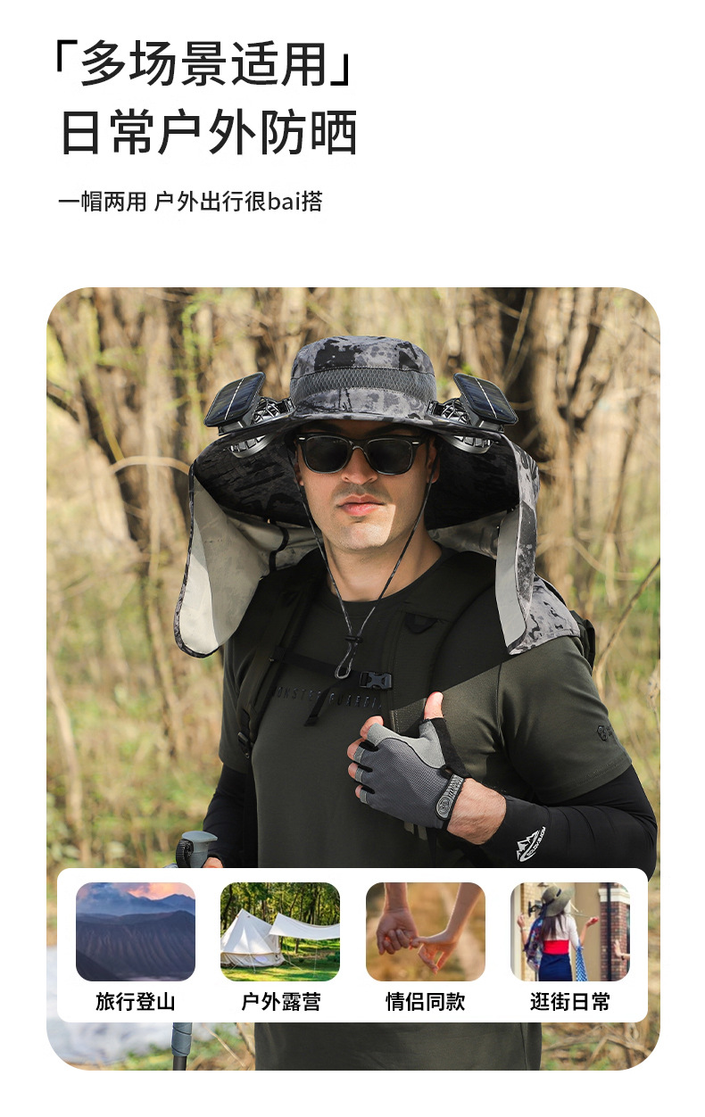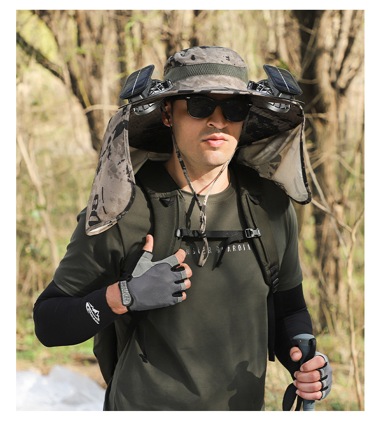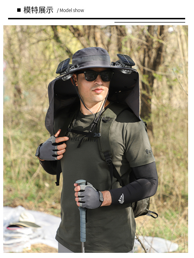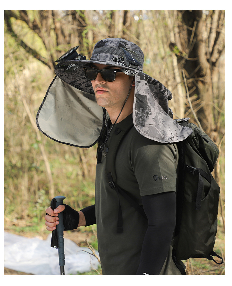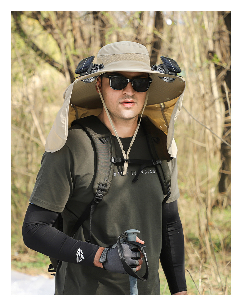 大披肩遮陽帽護脖夏季防曬男士戶外漁夫帽大風力太陽能可充電風扇