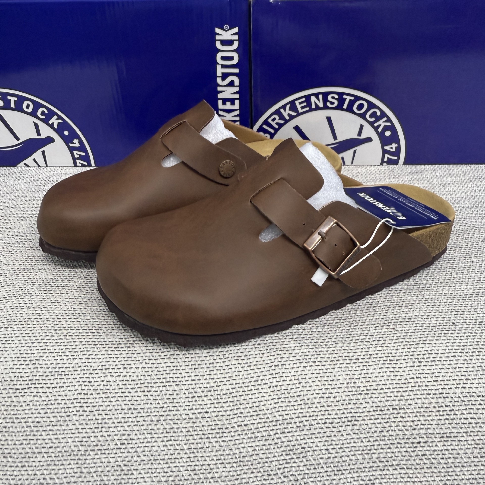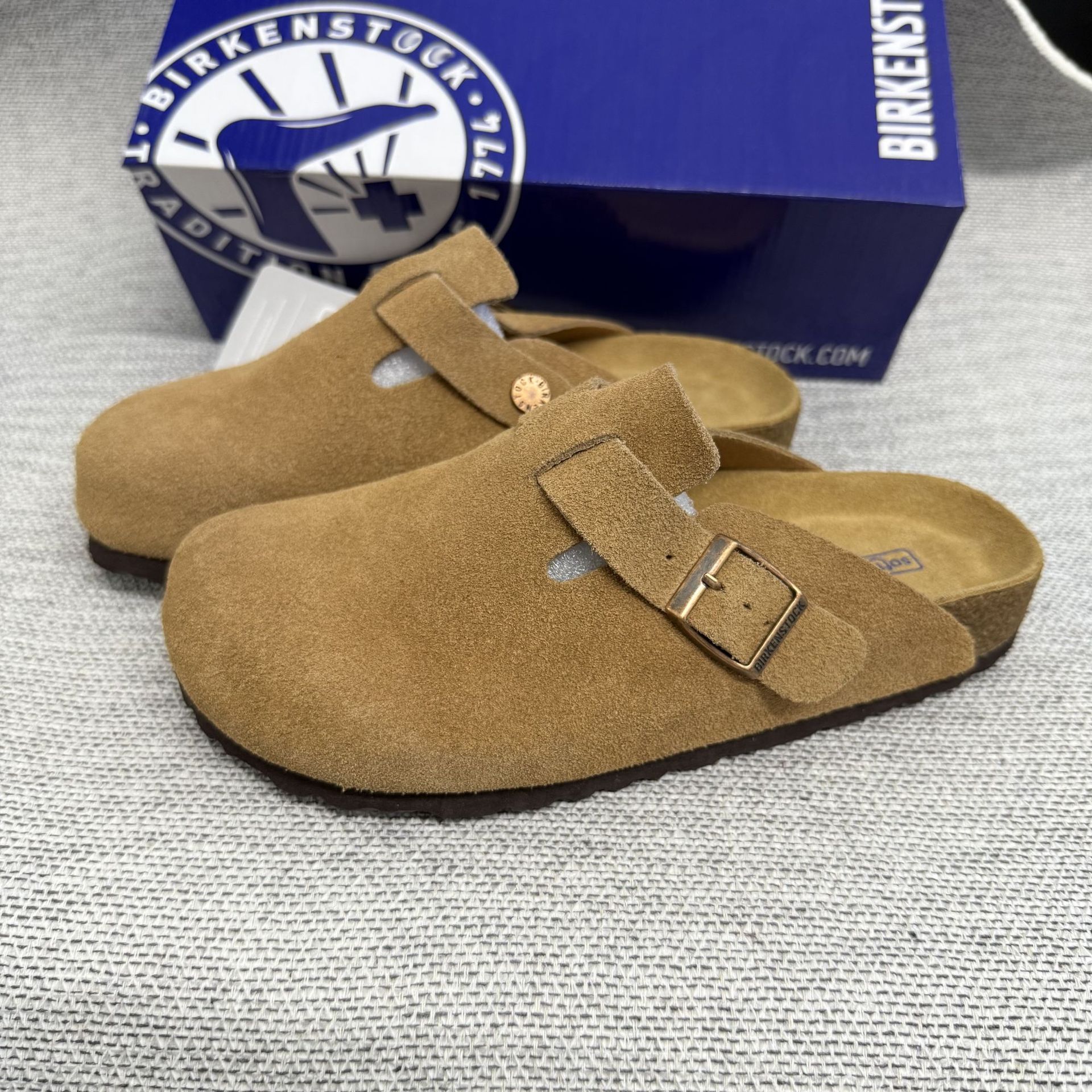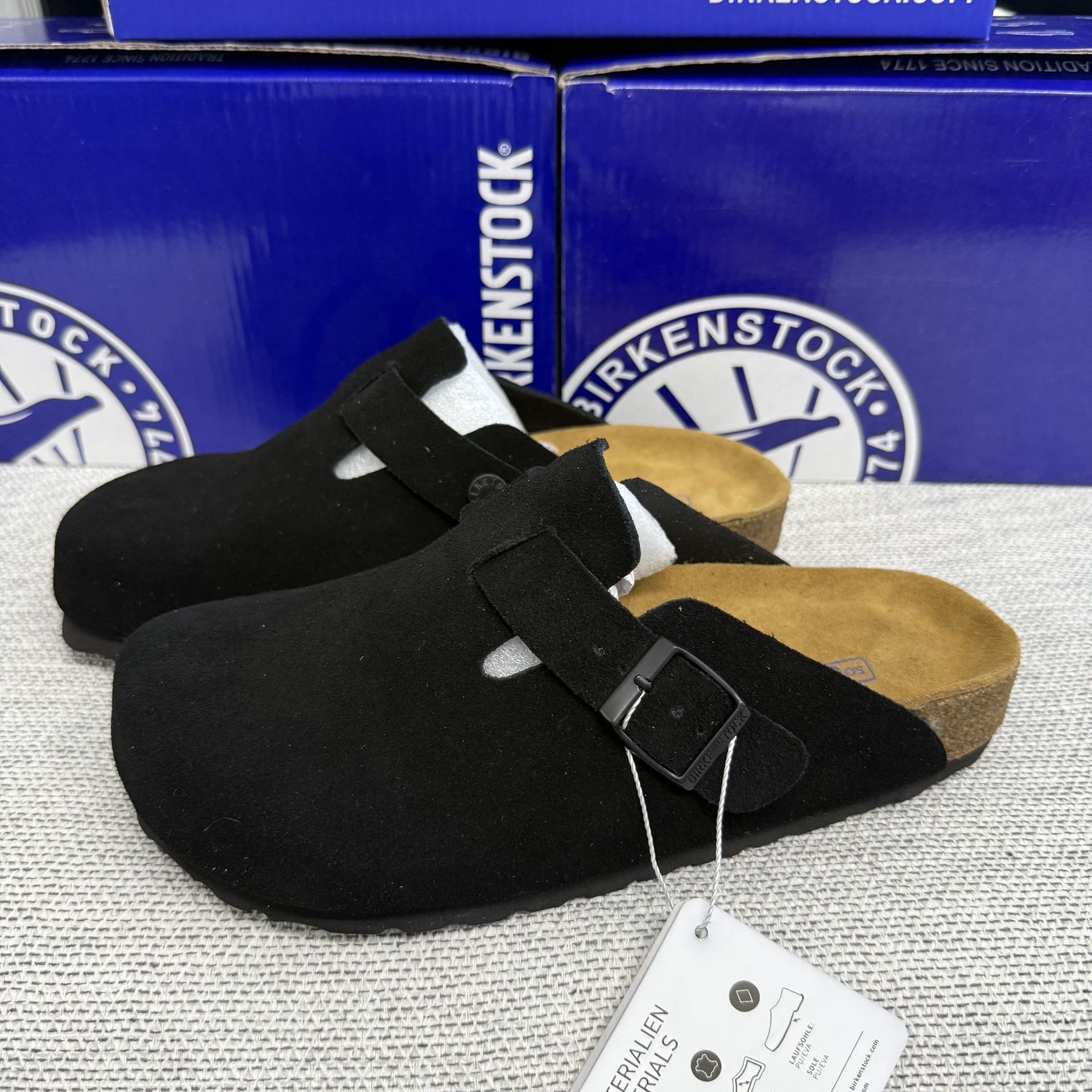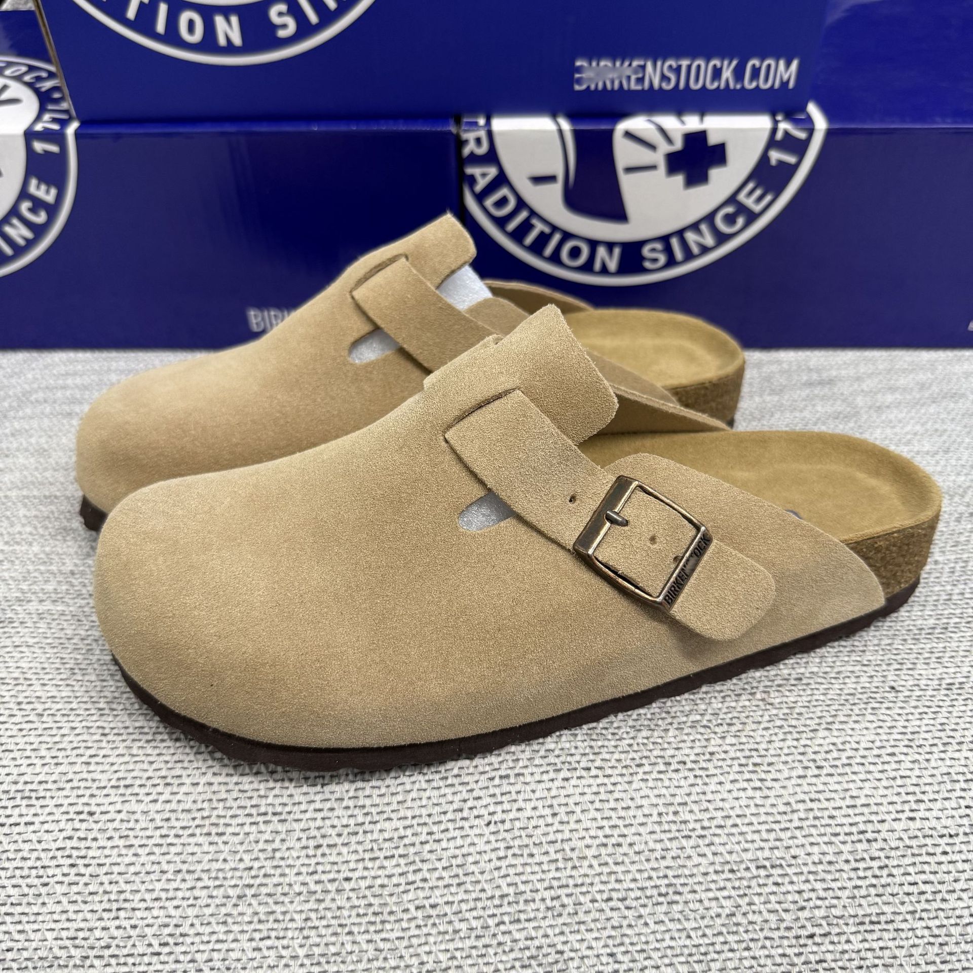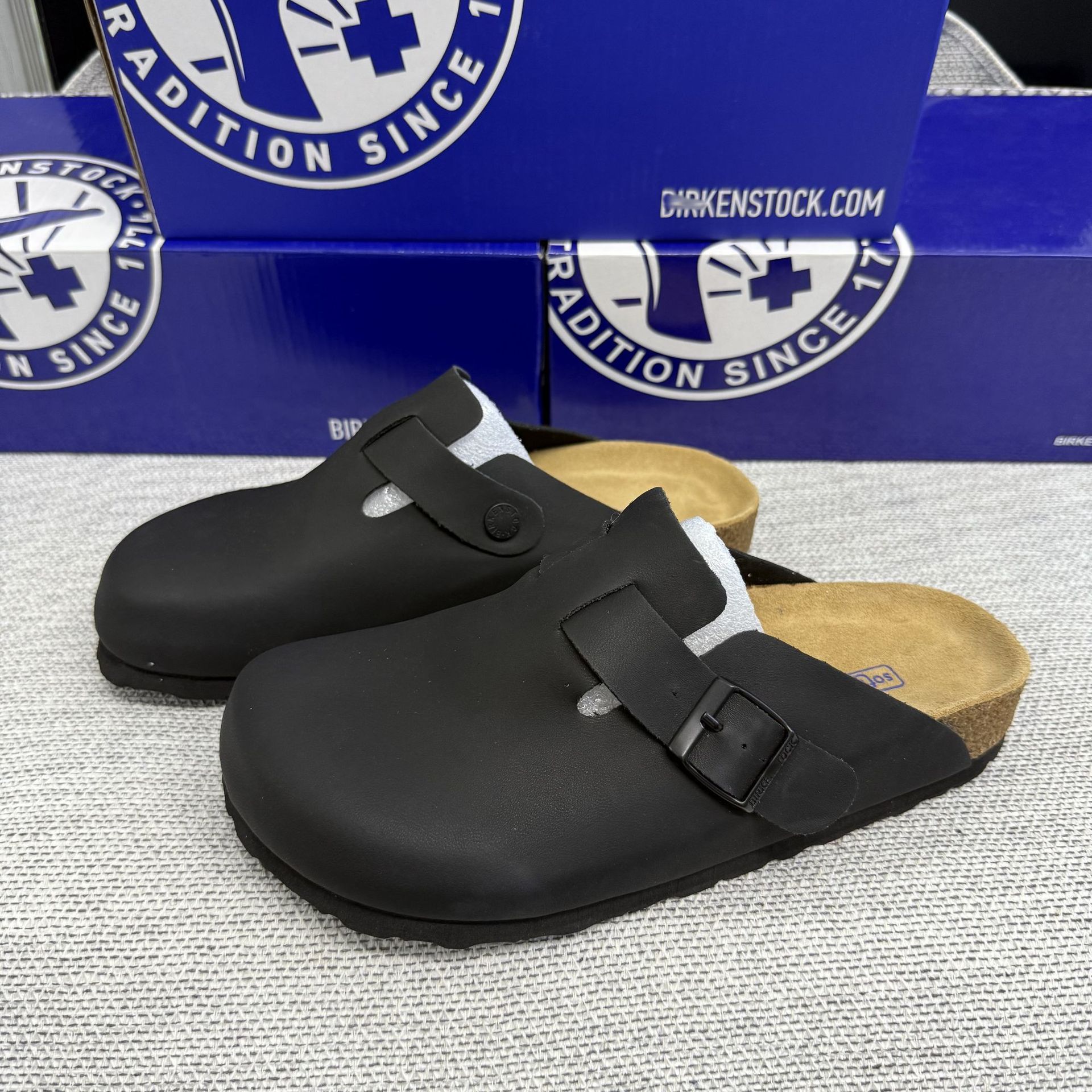 BK男女同款軟木平底勃肯鞋真皮包頭磨砂牛皮休閒懶人厚底博肯拖鞋