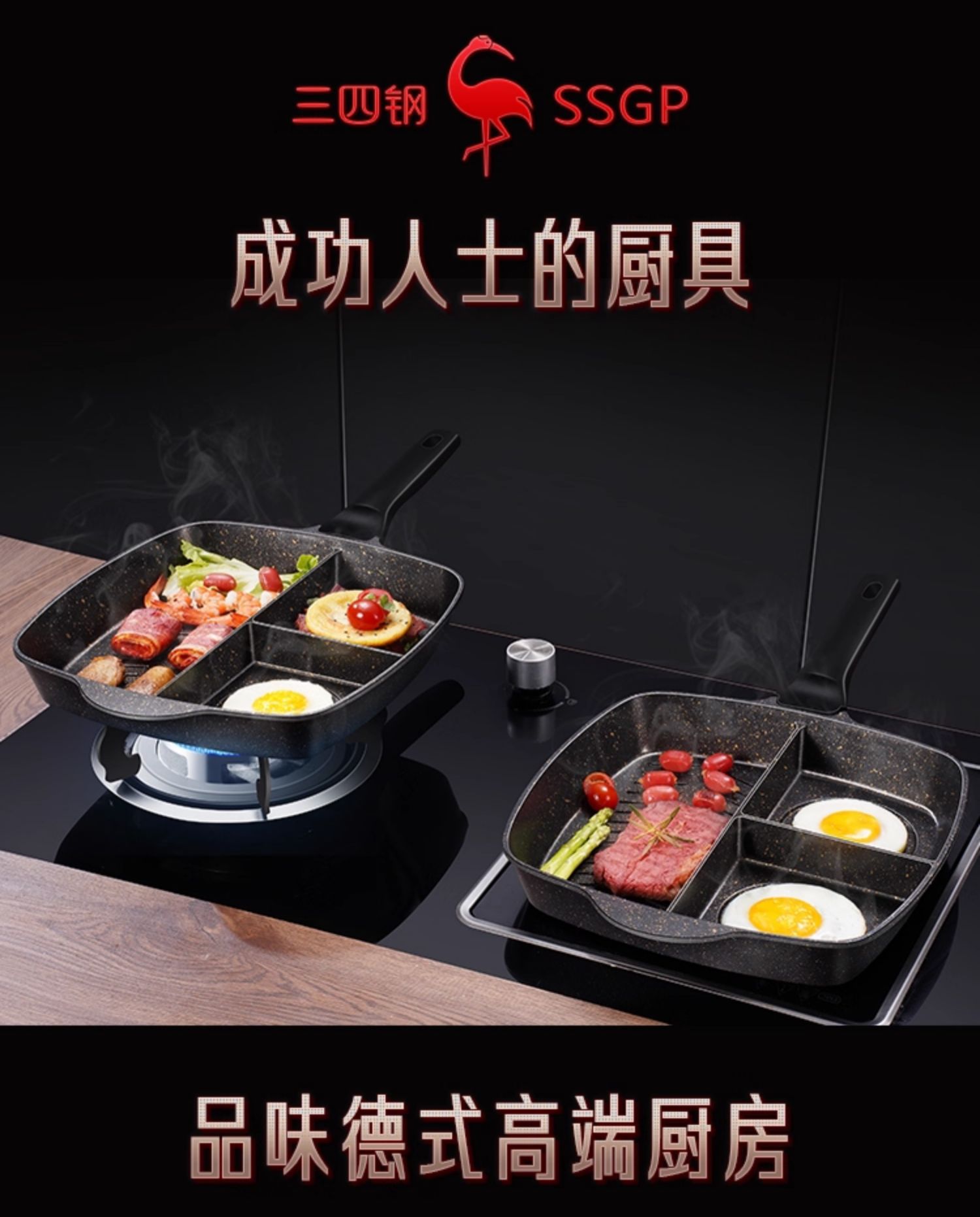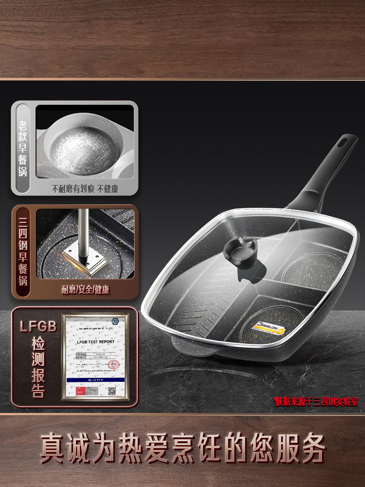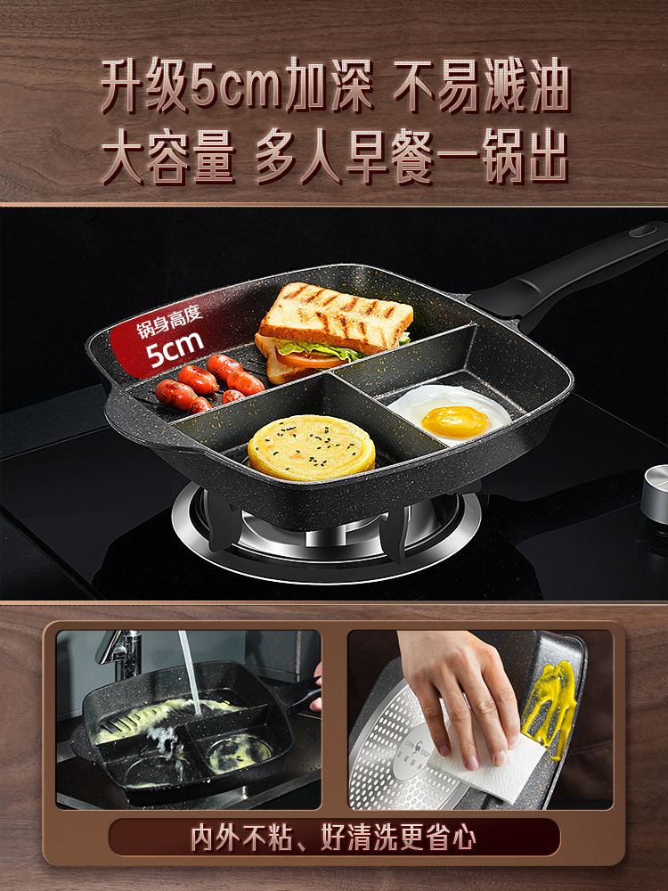 三四鋼®三孔早餐鍋家用不沾鍋餐廳廚房鍋具煎蛋煎牛排平底煎鍋