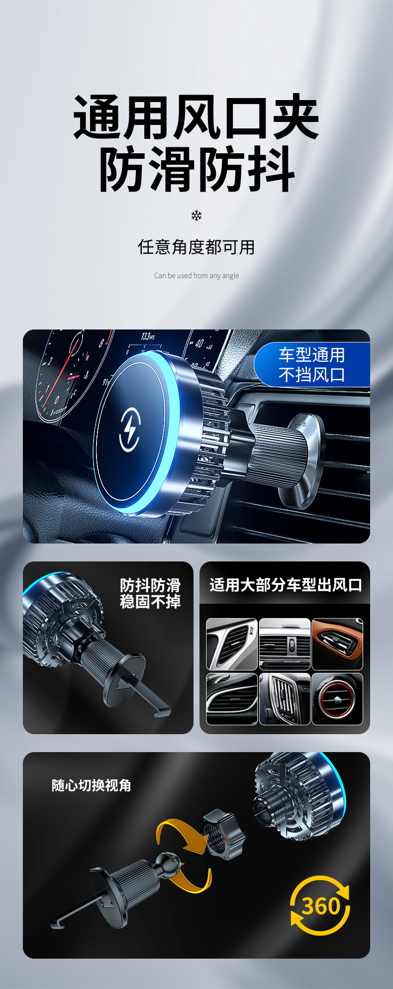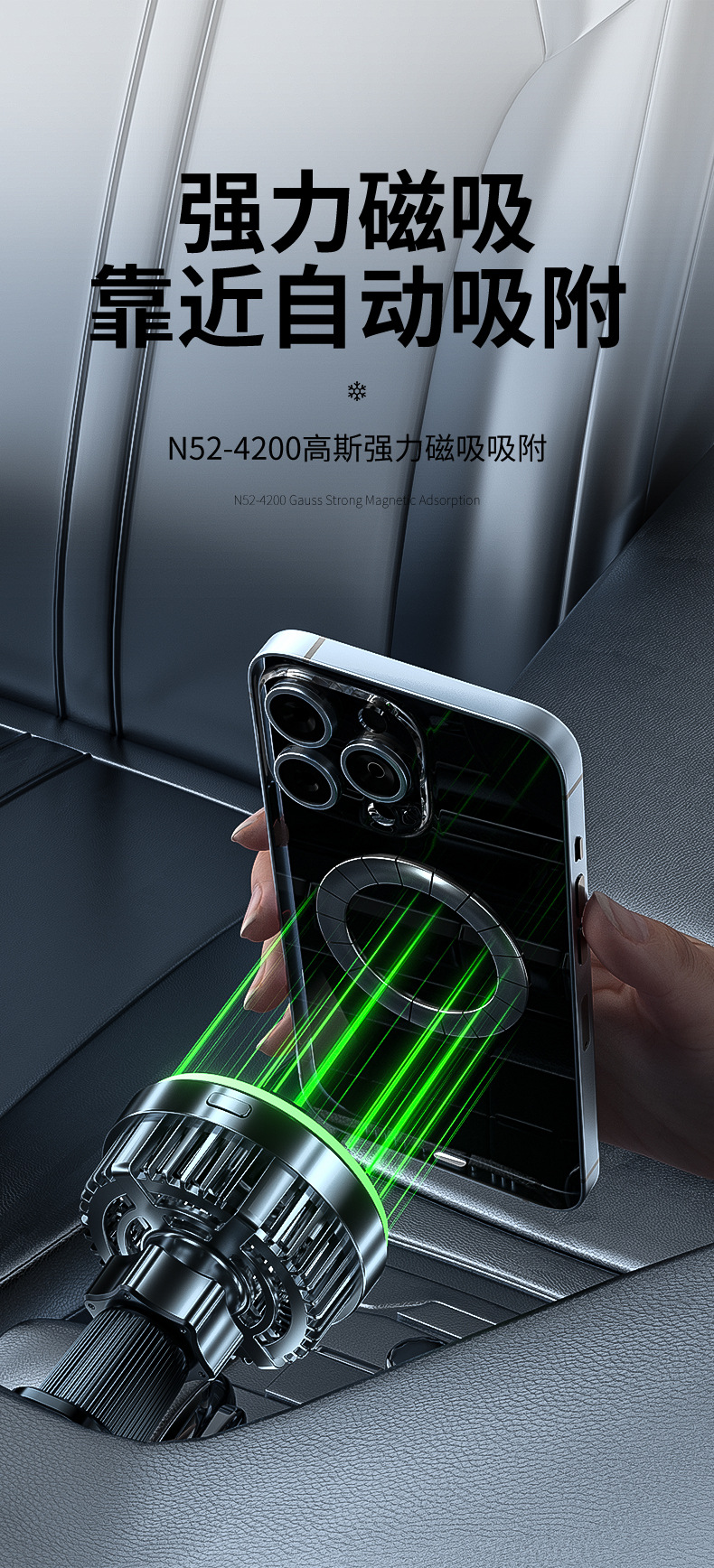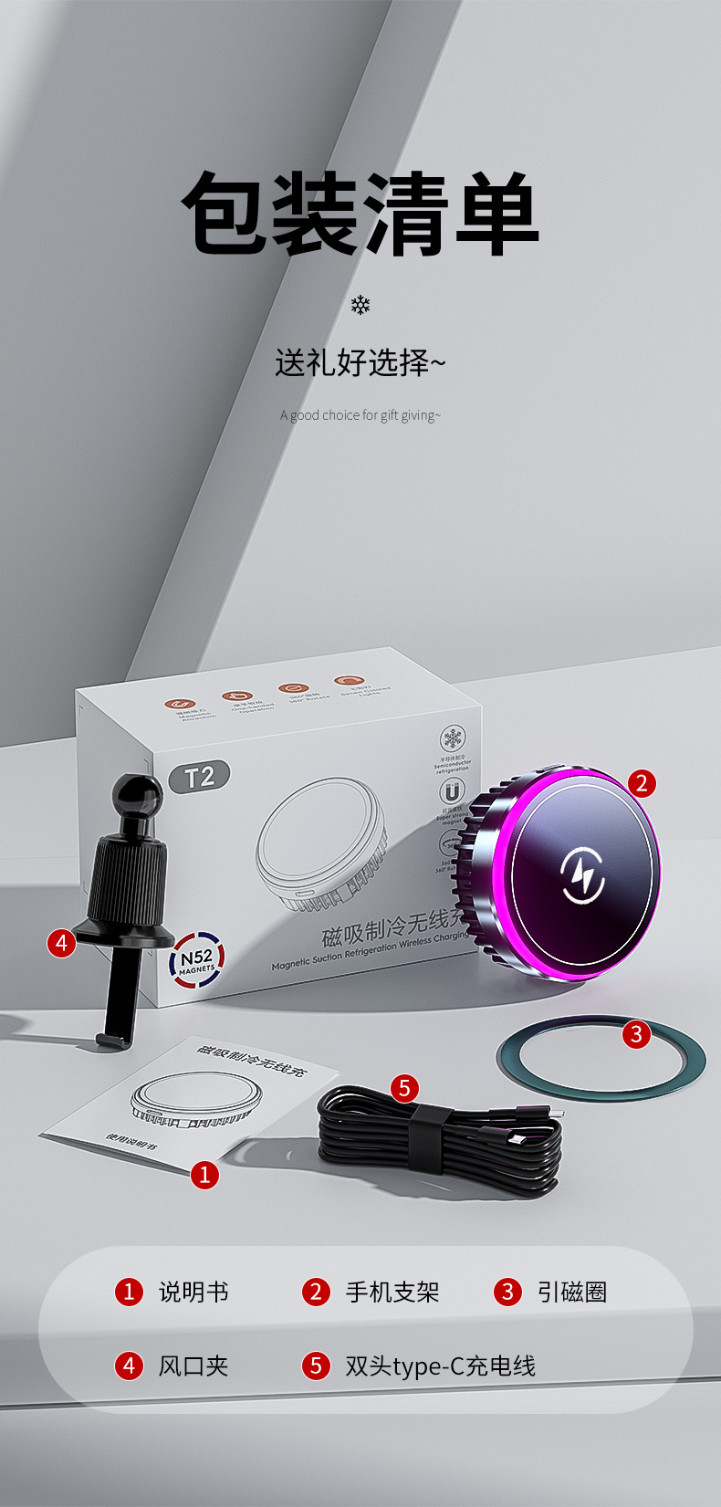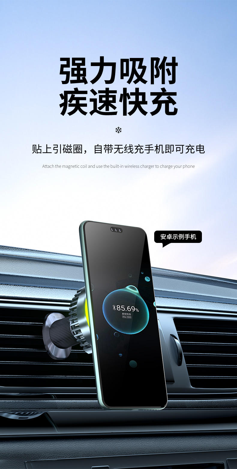 魔夾T2半導體製冷車用磁吸無線充通用智能導航車用手機散熱器支架