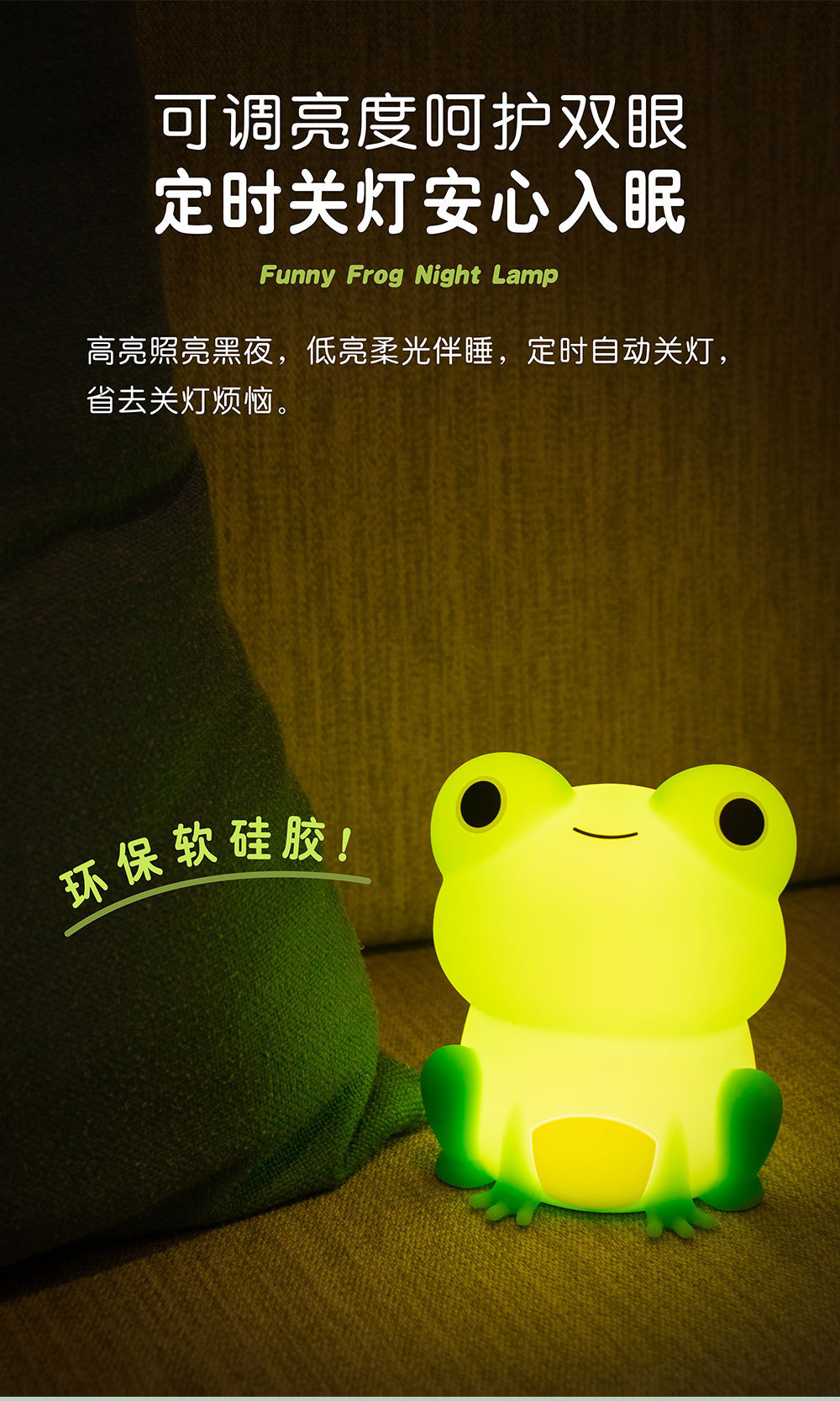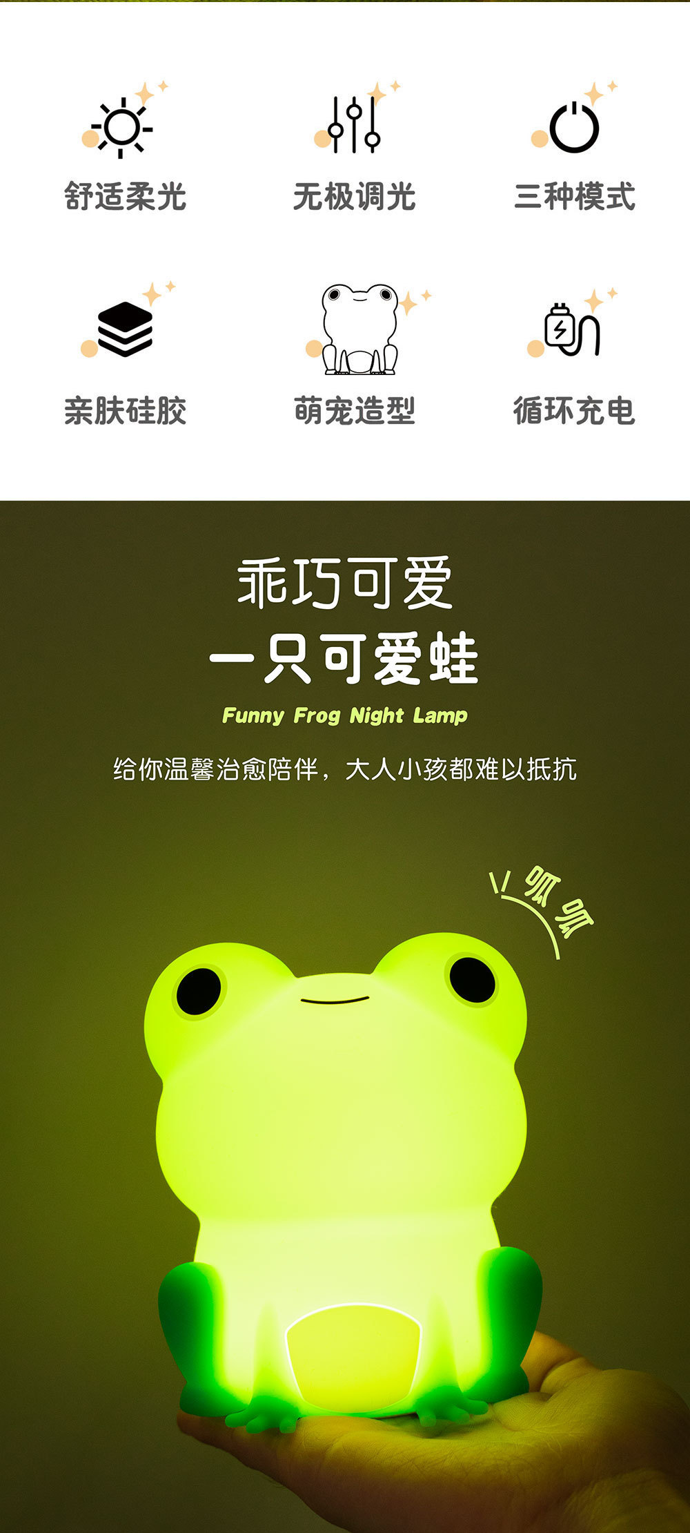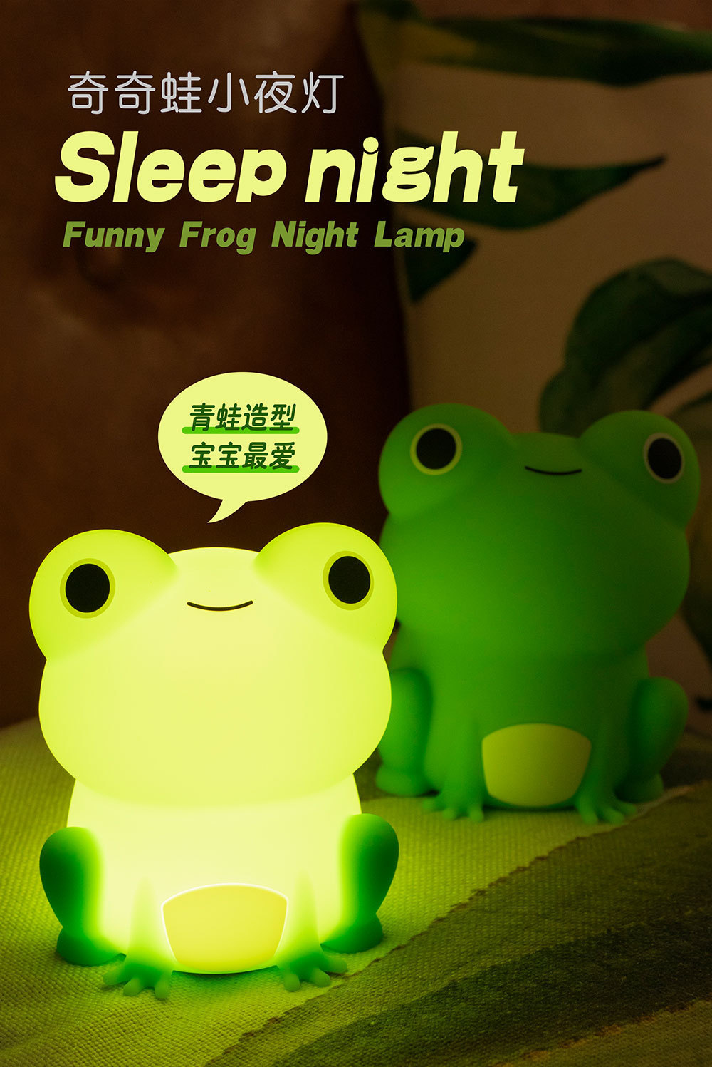 青蛙夜燈奇奇蛙矽膠拍拍燈床頭臥室usb充電伴睡氛圍感好物